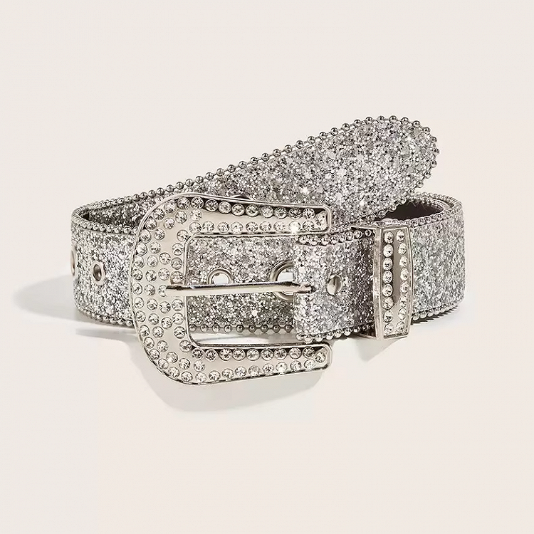 Silberner Gürtel mit durchgehender Strass-Schnalle