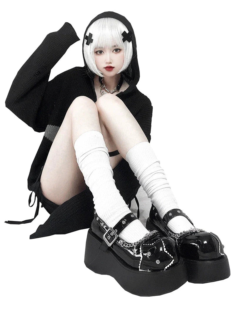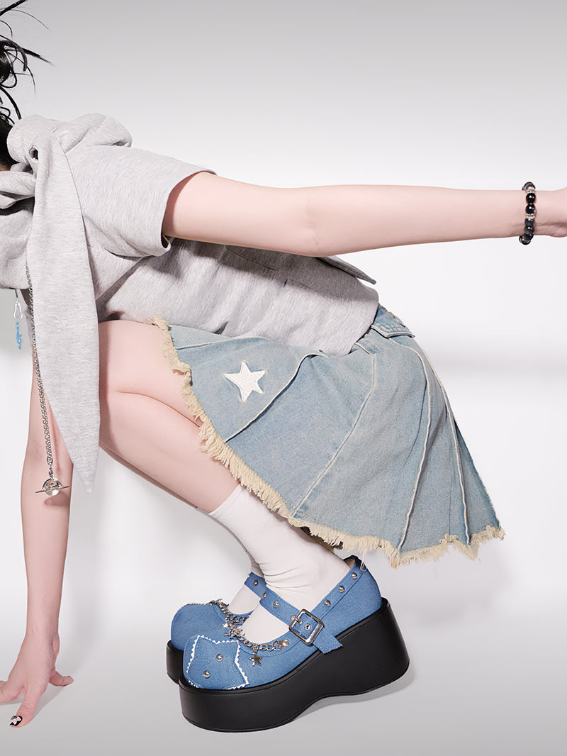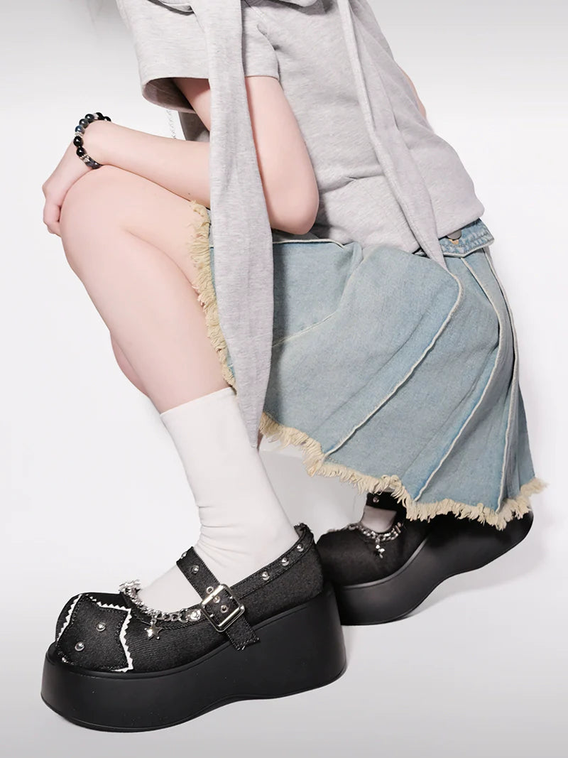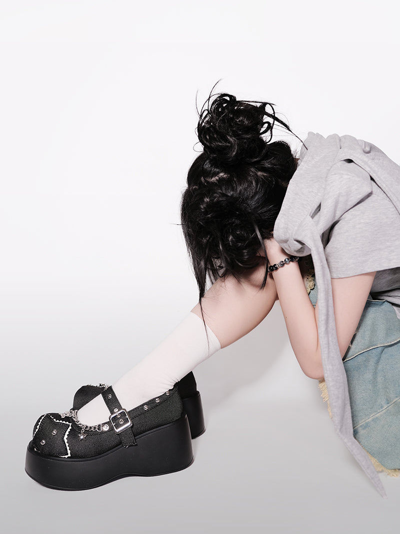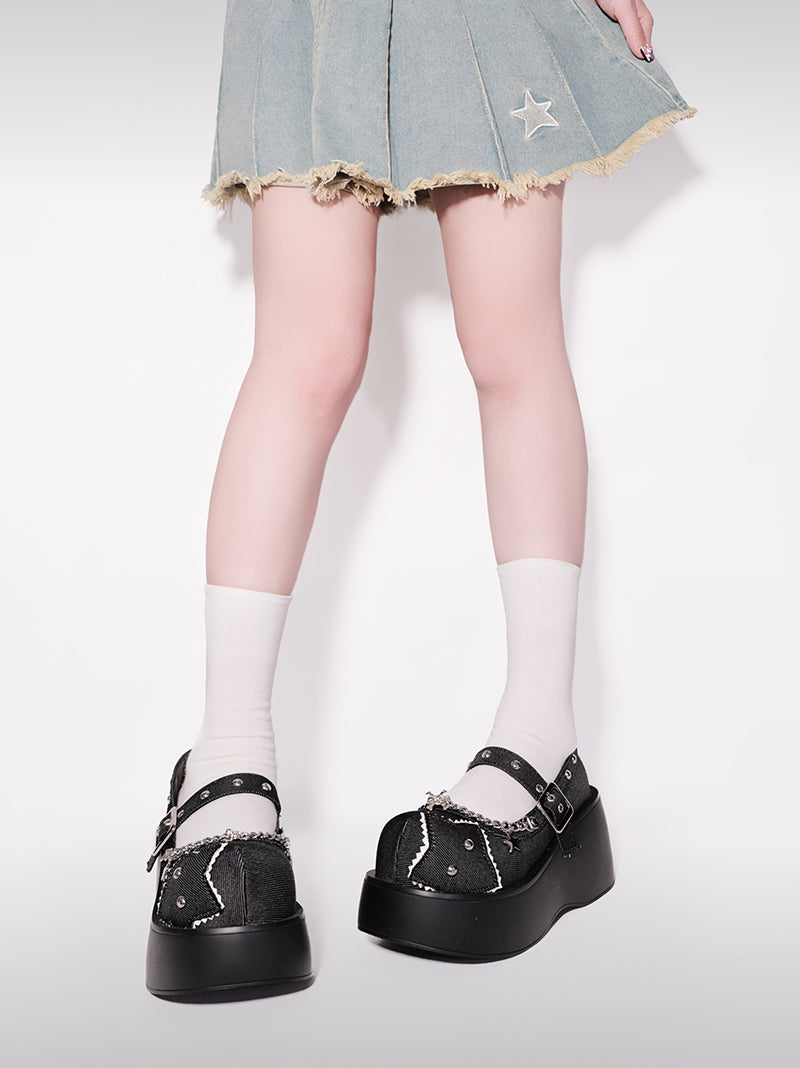 Schnalle Star Toe Platform Denim One Punk Runde Schuhe