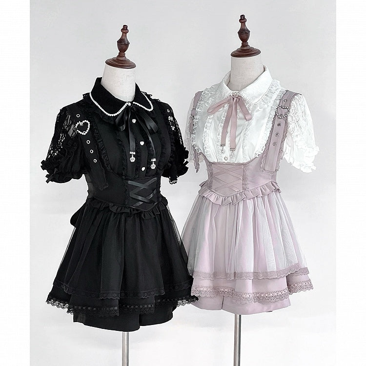 Rosa Jirai Kei Overallkleid, verstellbare Schultergurte mit Herzperlenschnallendetails