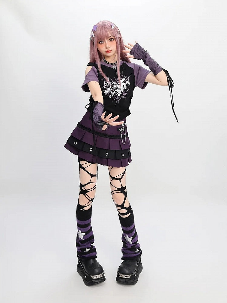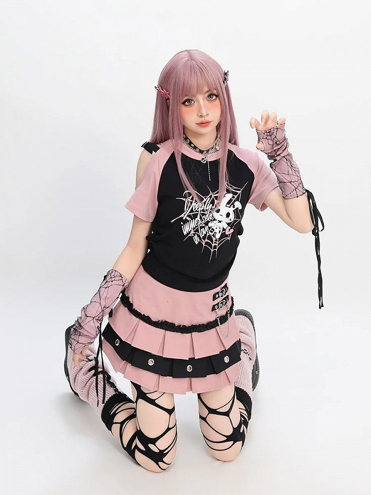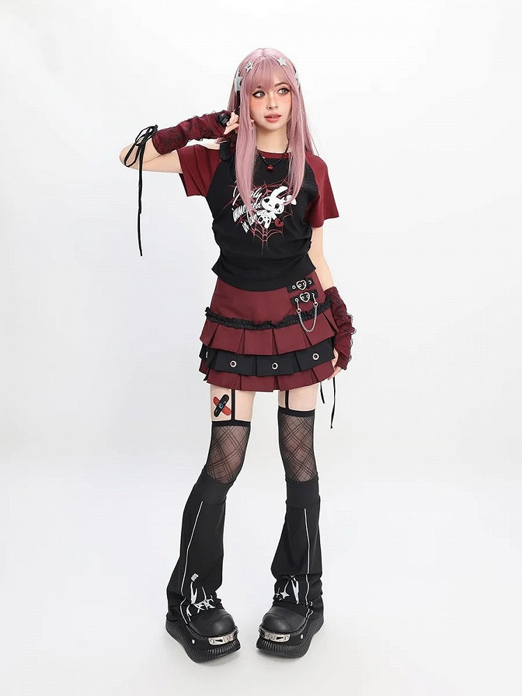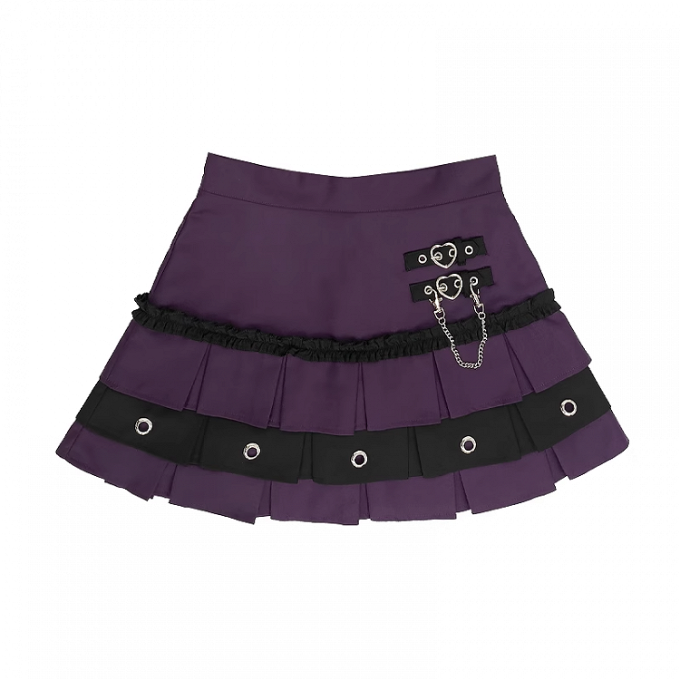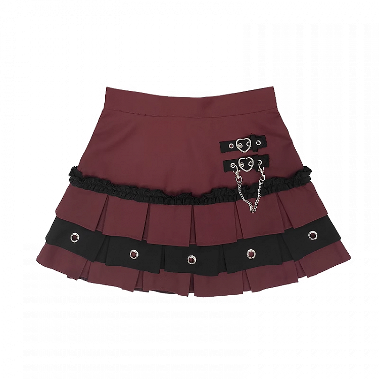 Schnallen Stufenrock Y2K Rot/Pink/Lila Herz Kellerfalte Gefüttert