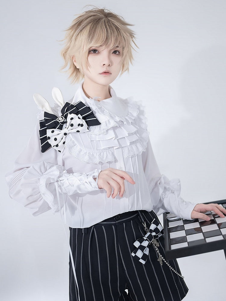 Bunny Theater Schleifenbrosche mit Hasenohren/Punktmuster/Schachmuster-Optionen