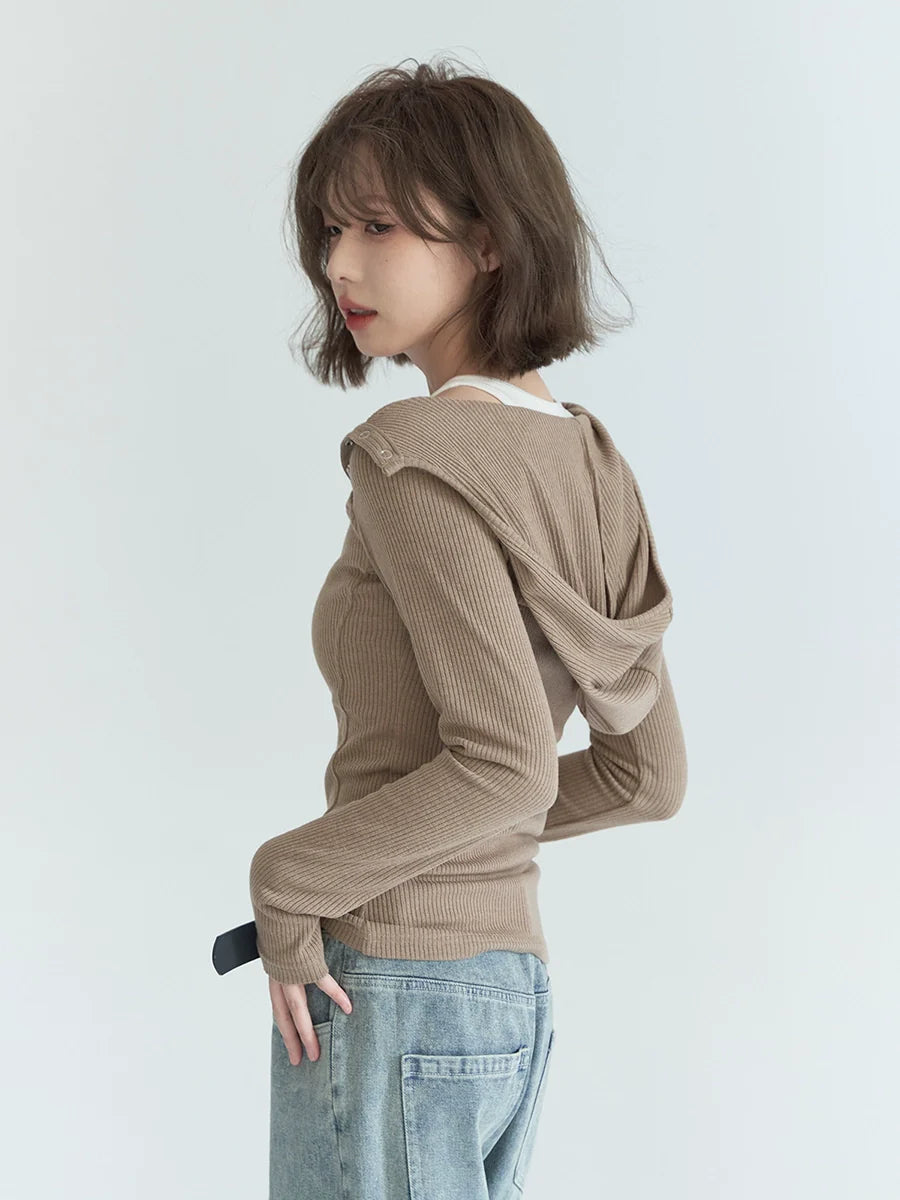 Schmales Oberteil mit Kapuze und Knöpfen an den Schultern