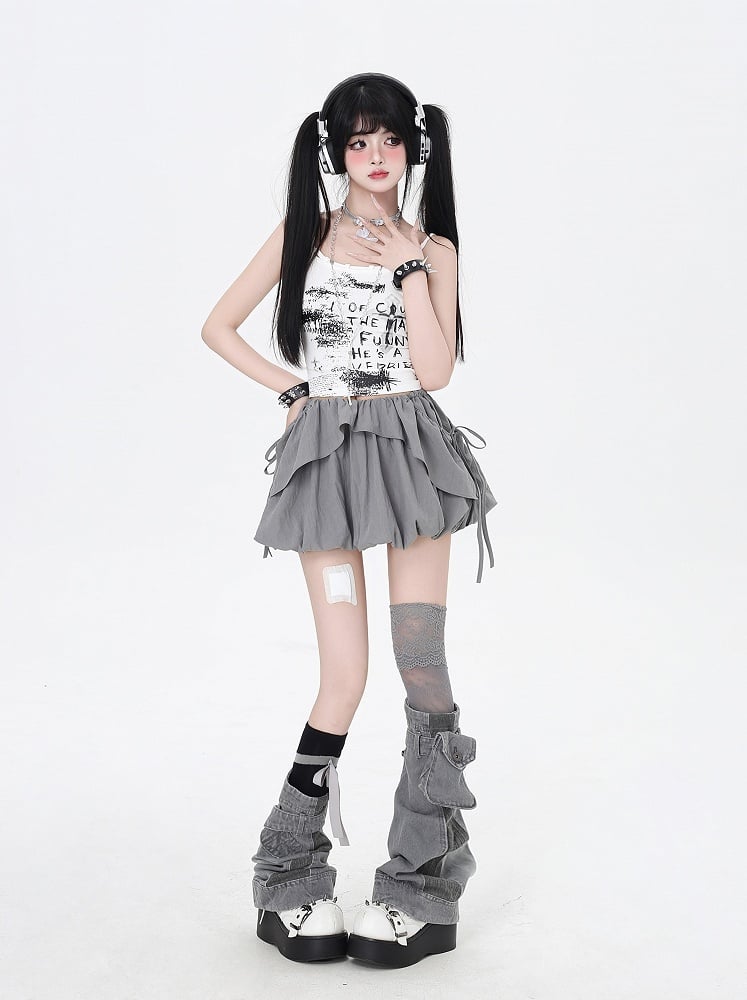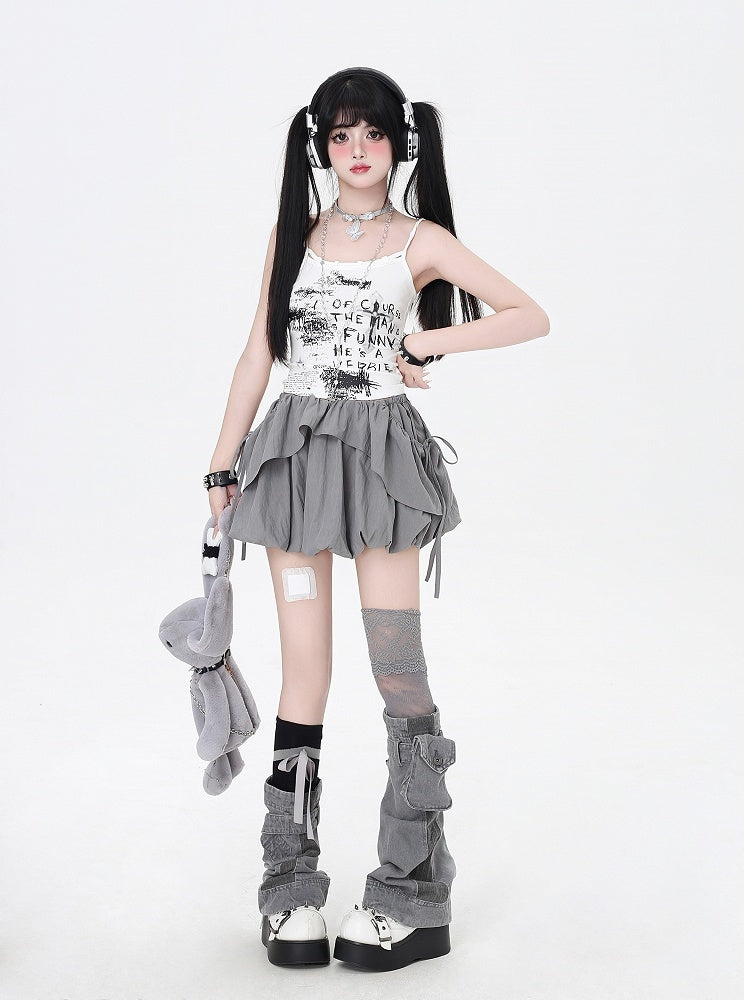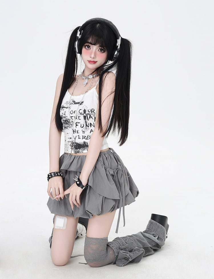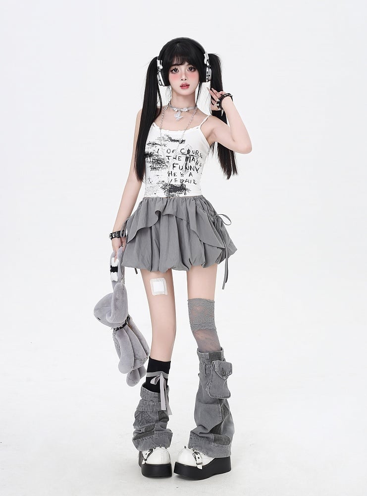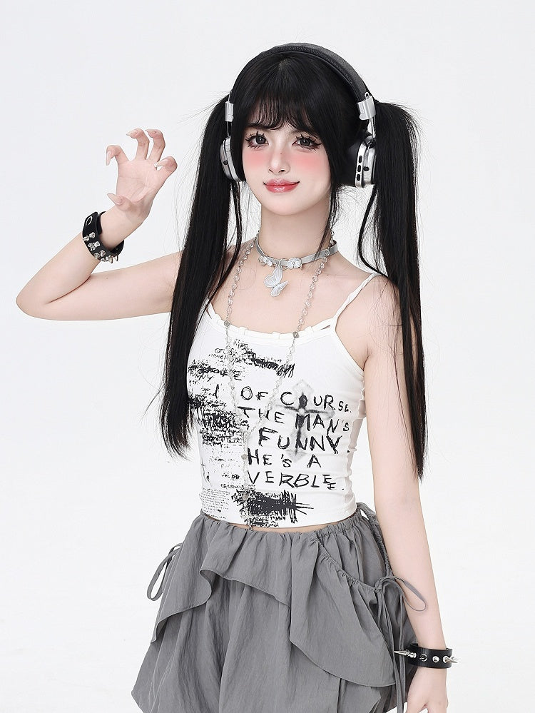 Schwarz/weißes, schmal geschnittenes Cami-Top mit Graffiti-Print