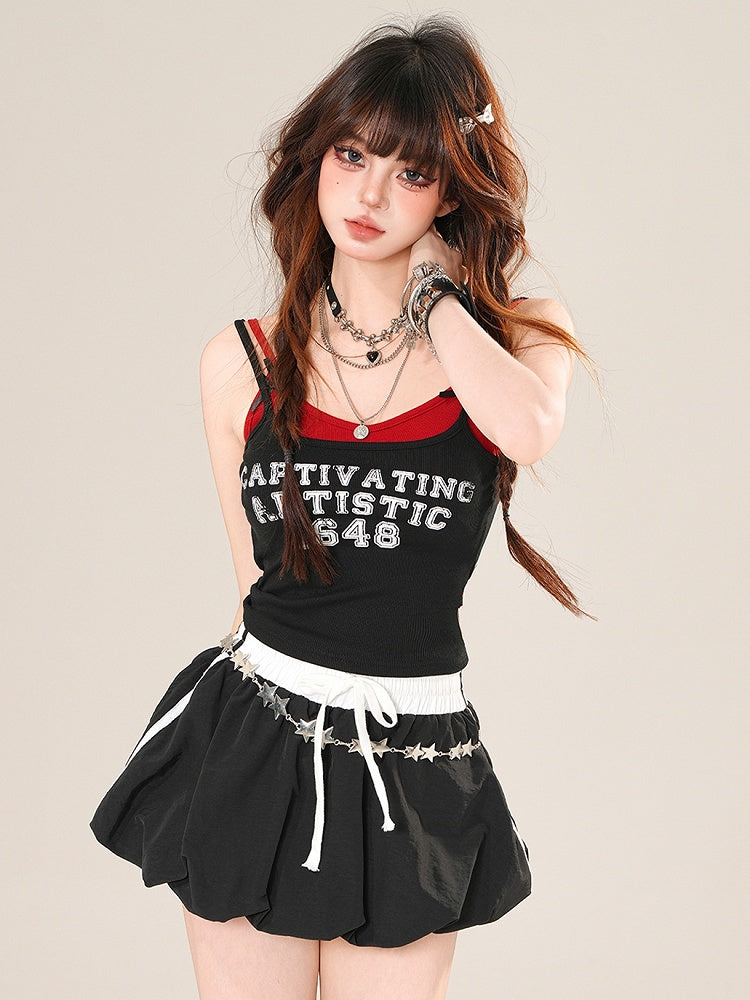 Schwarzes Camisole-Oberteil mit Schleife und Buchstaben-Print von Bittersweet Glamorous