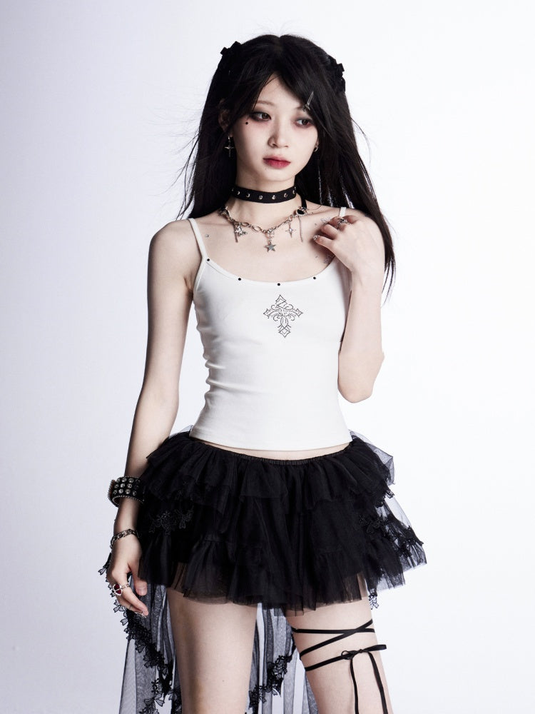 Glamouröses Cami-Top mit weißem Strass und Kreuz