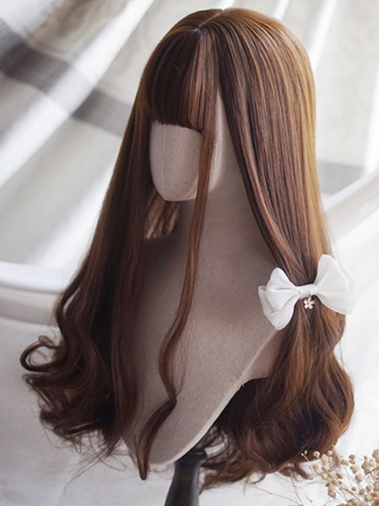 Gönnen Sie sich diese süße, lange, gewellte Karamellperücke mit vollem Pony. Verwandeln Sie Ihren Look mit Leichtigkeit und verleihen Sie Ihrem Haar Volumen und Bewegung. Erzielen Sie mühelos einen frischen und witzigen Style, perfekt für jeden Anlass.