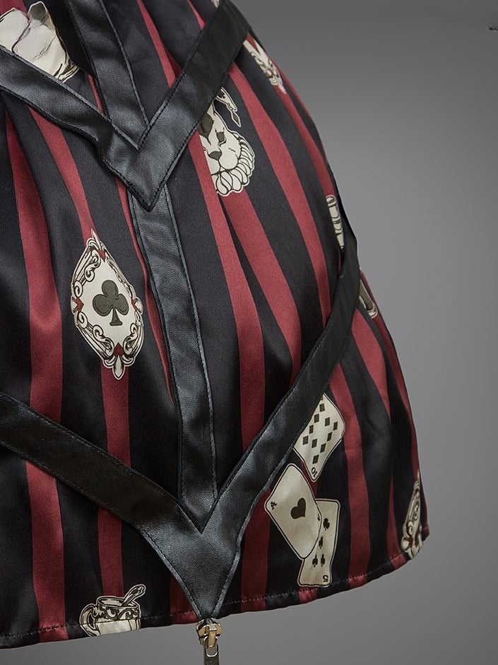 Schwarz-rot gestreiftes Punk-Lolita-Kleid mit Spielkarten-Prints