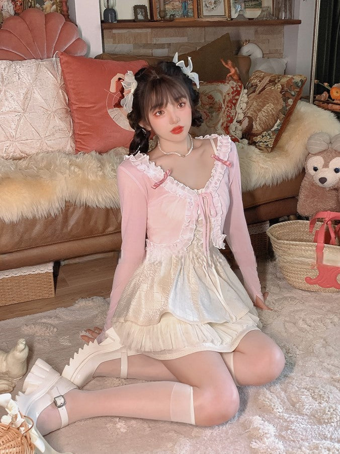 Rosa und weißes Old School Lolita Fashion Kleid Bowknot Detais Lolita JSK Set
