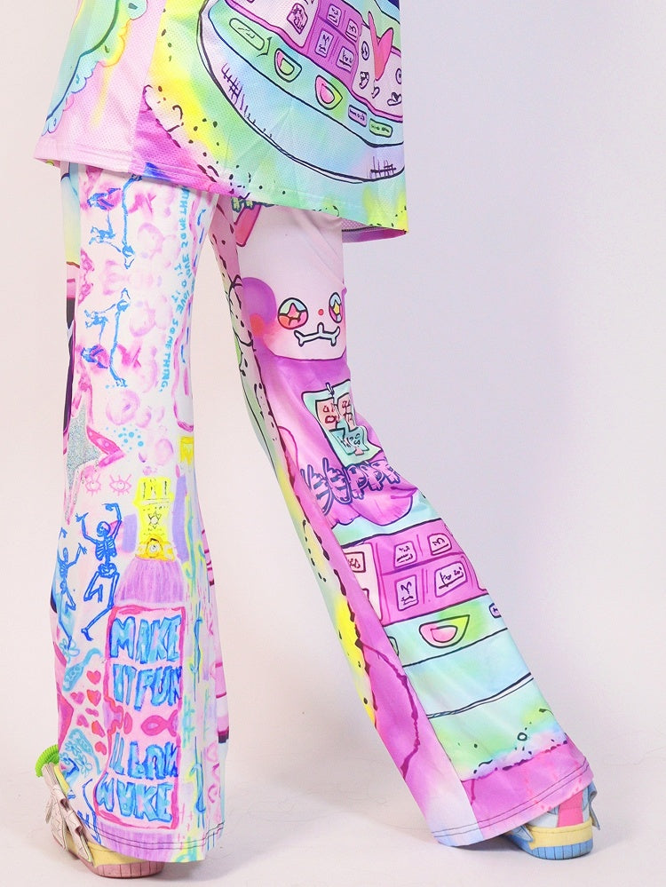 Cartoon Silhouette Hose Flare Print Y2K Bunt