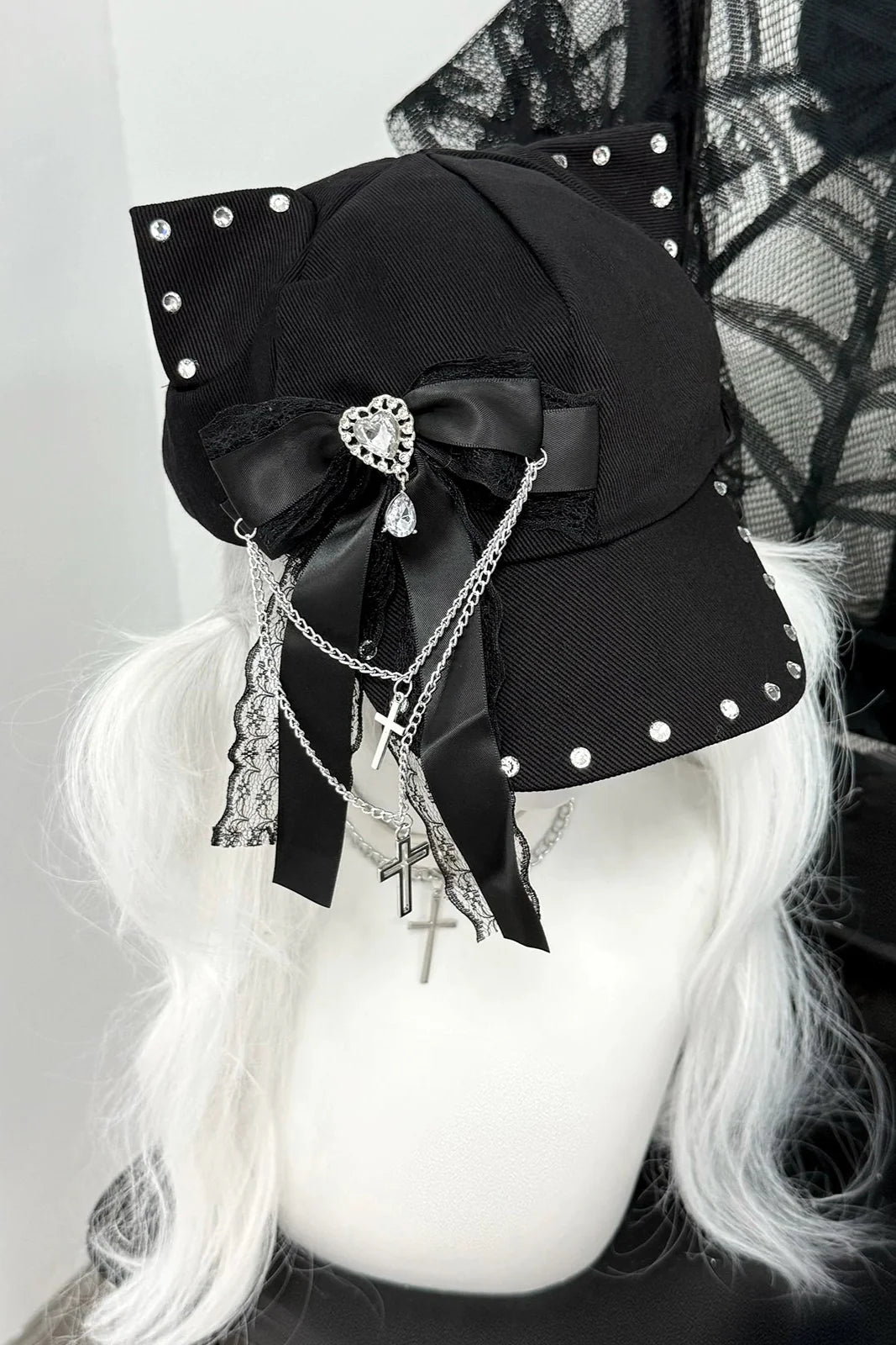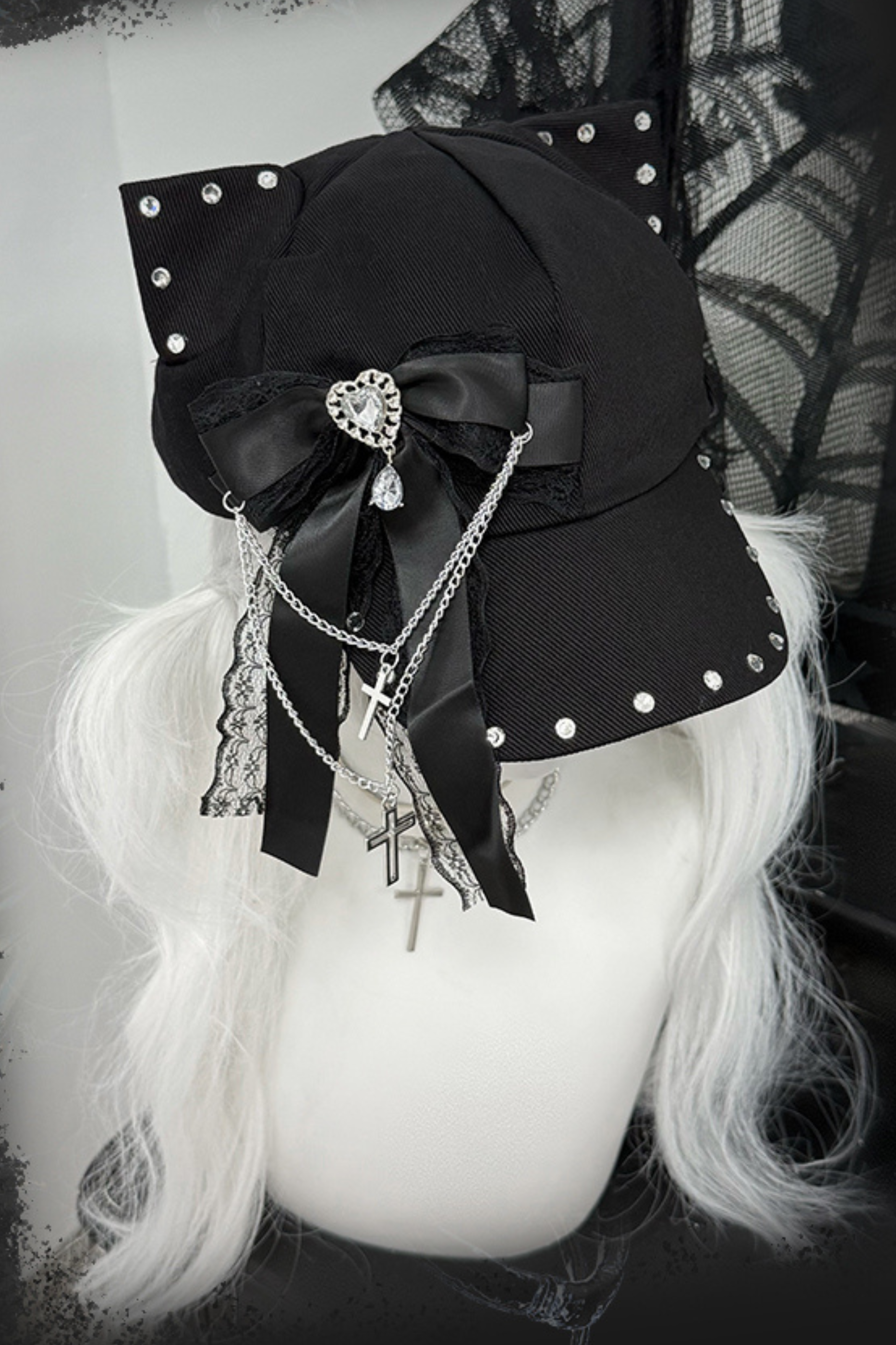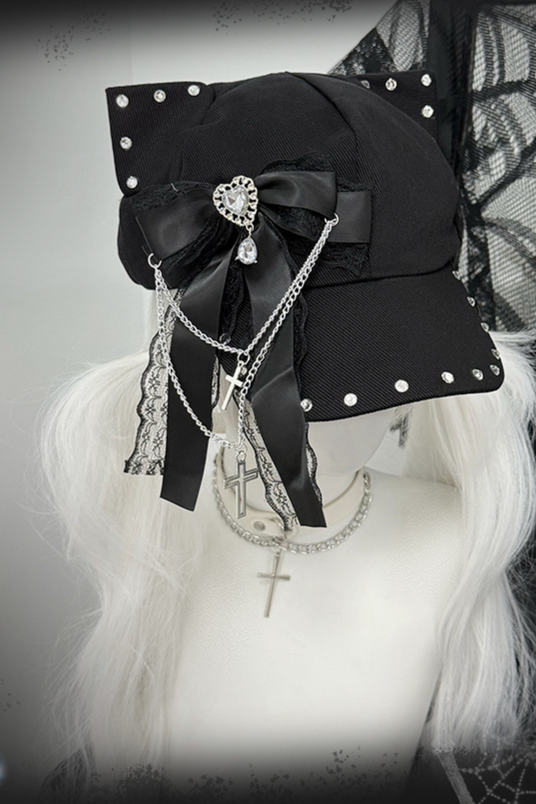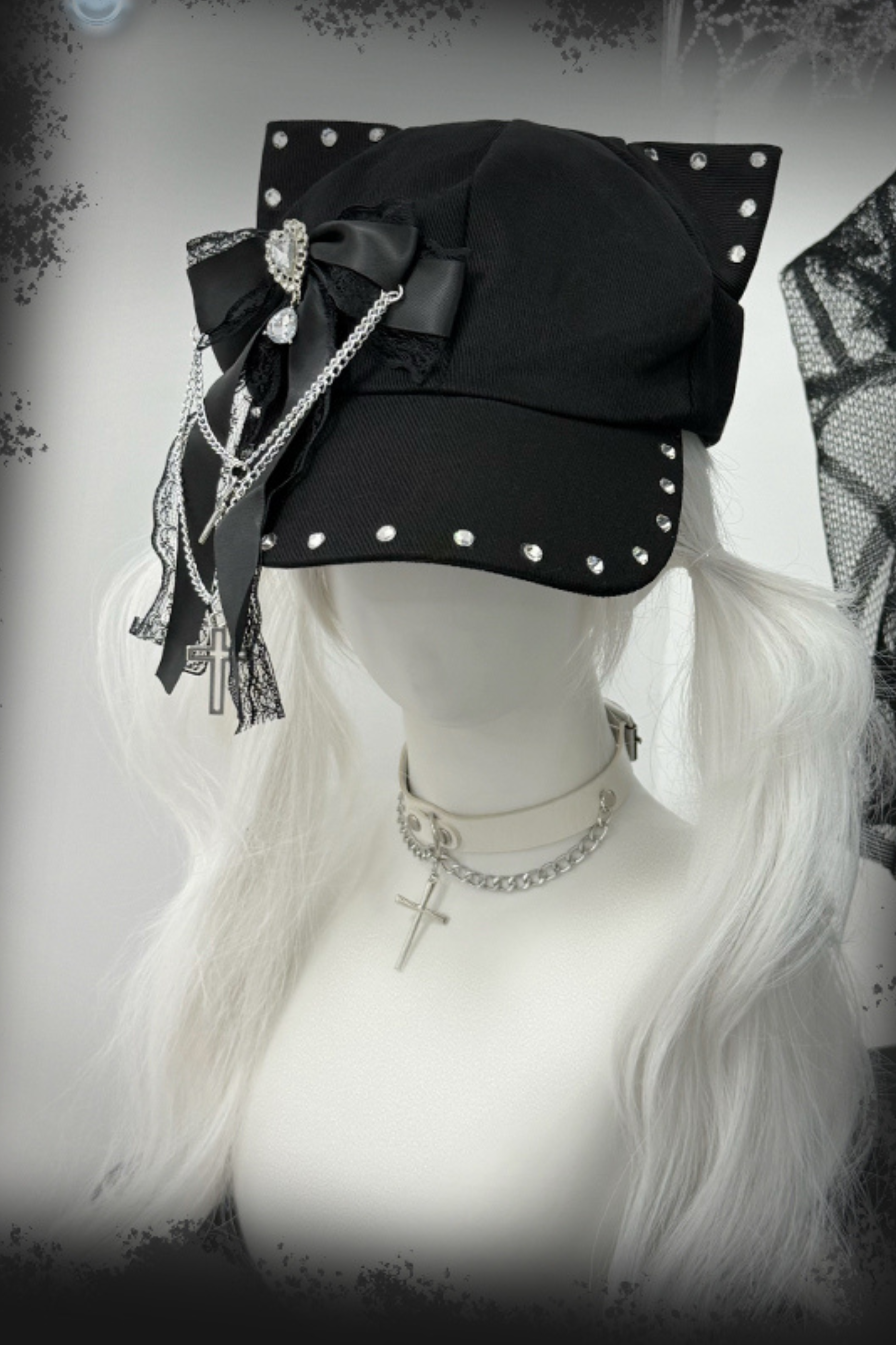 Weiß-rosa Lolita-Haube-Halsband