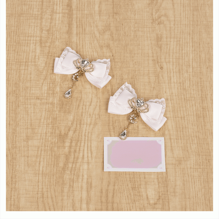 Celestial Collection Moon Options Jirai Kei Bowknot Hairclips with Beaded Chain Gemstone Star 5 Color