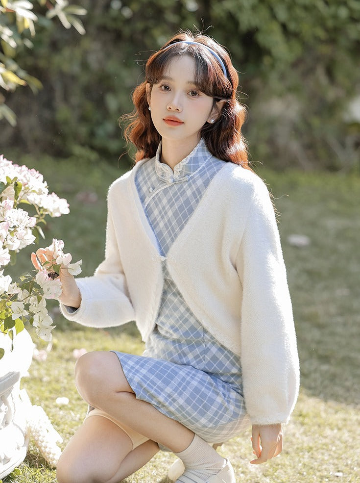 Check China + Kurzes Strick-Cardigan-Kleid Girly Retro