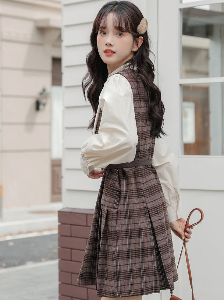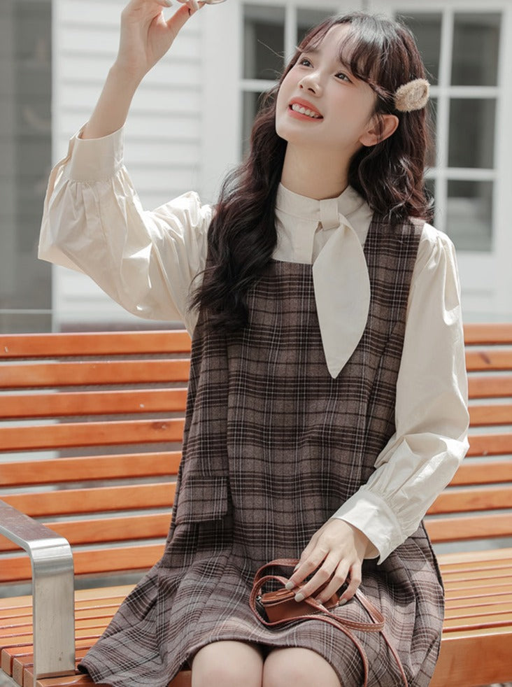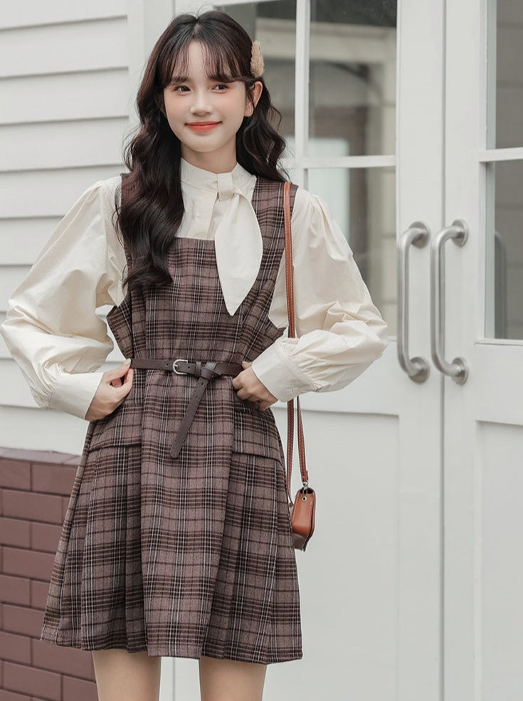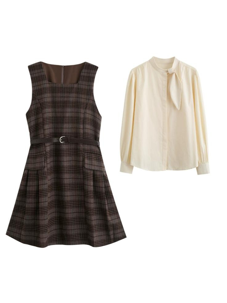 Verschönern Sie Ihre Garderobe mit diesem bezaubernden Set aus kariertem Rock, Schleifenhemd und Hosenträger! Der klassische Karorock, kombiniert mit einem süßen Schleifenhemd und Hosenträgern, ist ein echter Hingucker. Sehen Sie modisch aus und fühlen Sie sich wohl in diesem einzigartigen Outfit!