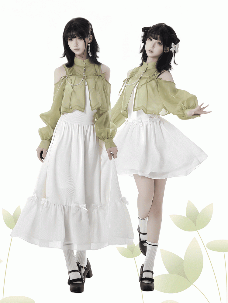 Verwandeln Sie Ihre Garderobe mit diesem hübschen, halbtransparenten, grünen Cheongsam-Top mit gerüschtem Ausschnitt und Cut-out-Schultern. Das traditionelle Cheongsam-Design kombiniert mit einem modernen Touch, mit schmeichelndem, gerüschtem Ausschnitt und Cut-out-Schultern, lässt Sie stilvoll hervorstechen. Perfekt für jeden Anlass, verleiht dieses Top Ihrem Look einen Hauch von Niedlichkeit.
