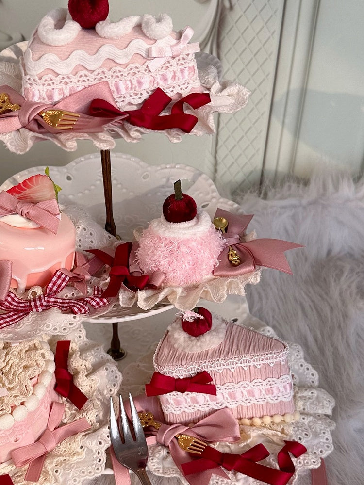 Kirsch-Mini- und Dekorations-Kuchenhut mit süßen blau/rosa Schleifen Lolita