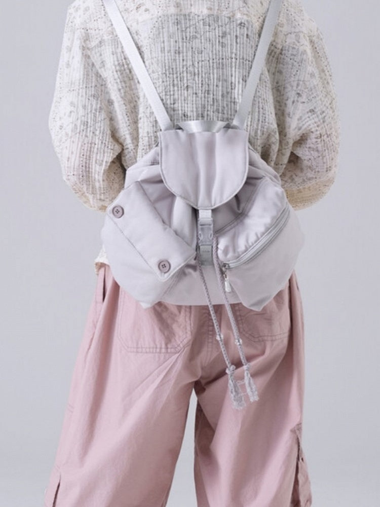 Chic Grey Drawstring Backpack With Flap Closure