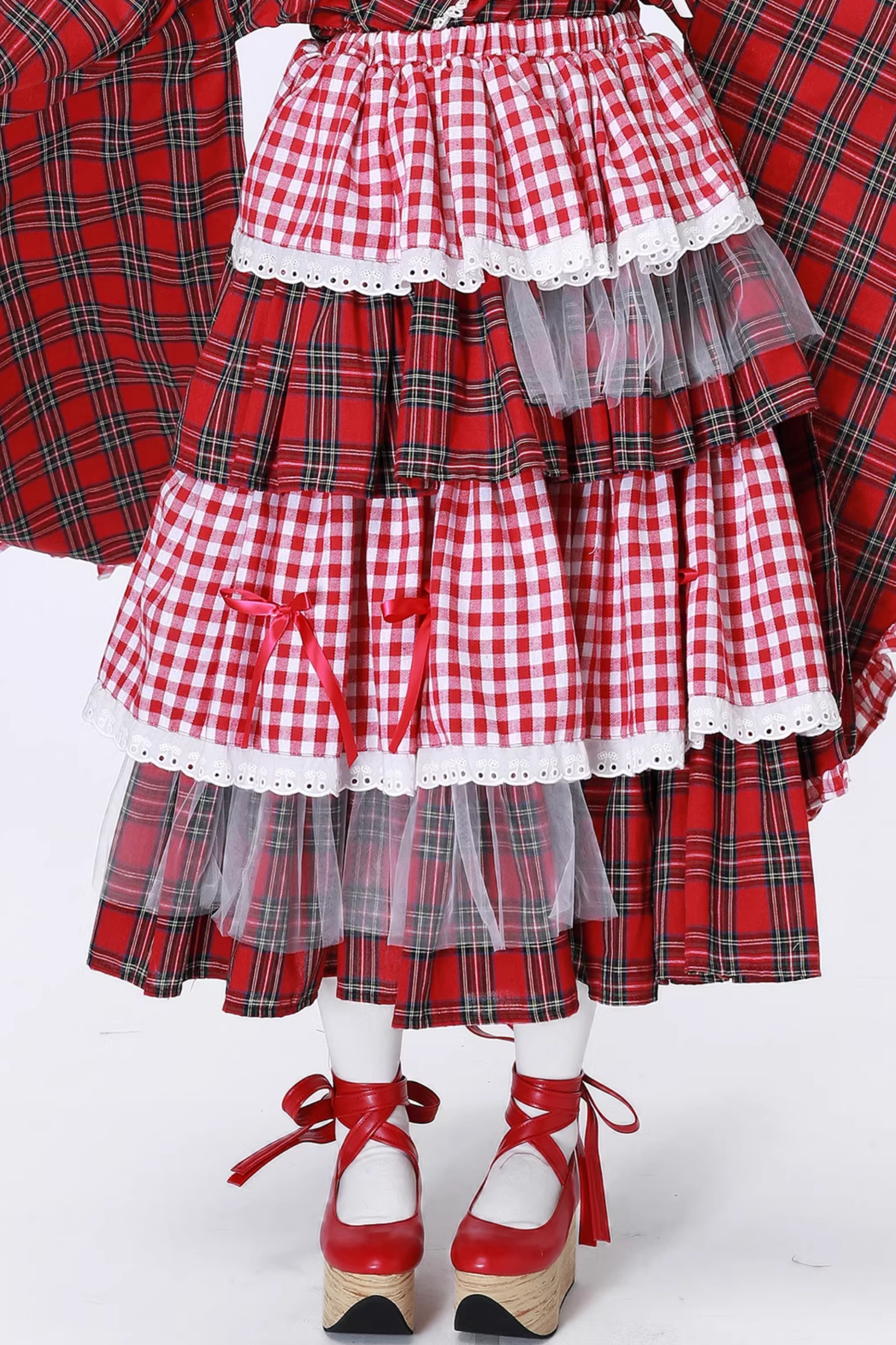 ❤Retro-Chic-Kimonorock mit rotem Karomuster❤