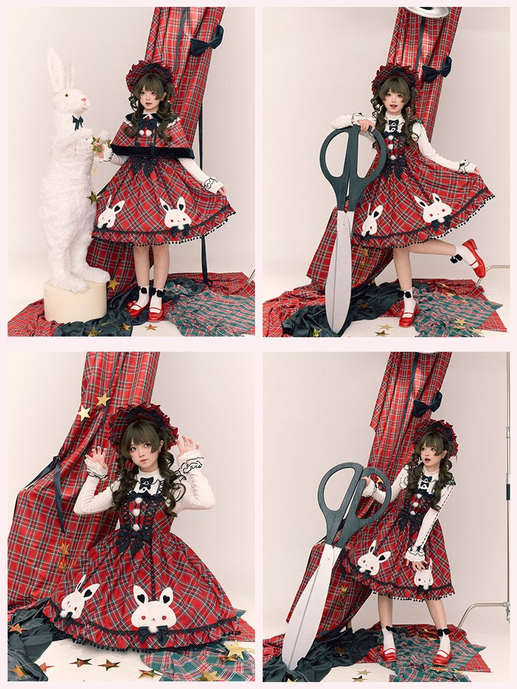 Christmas Red Plaid Ruffled Brim Bonnet