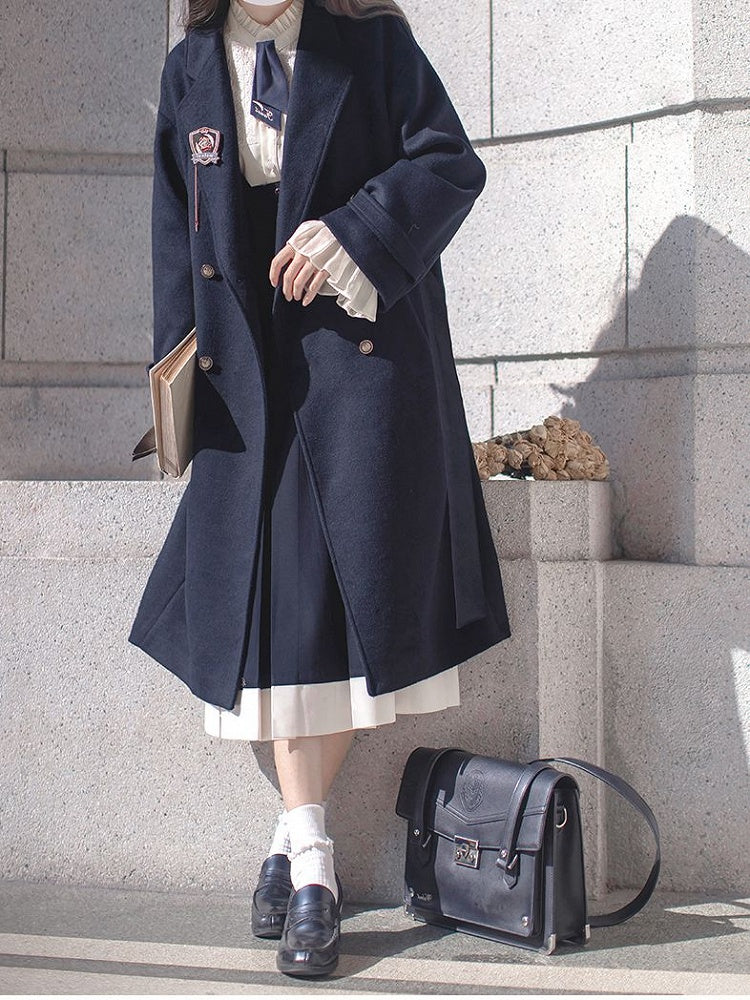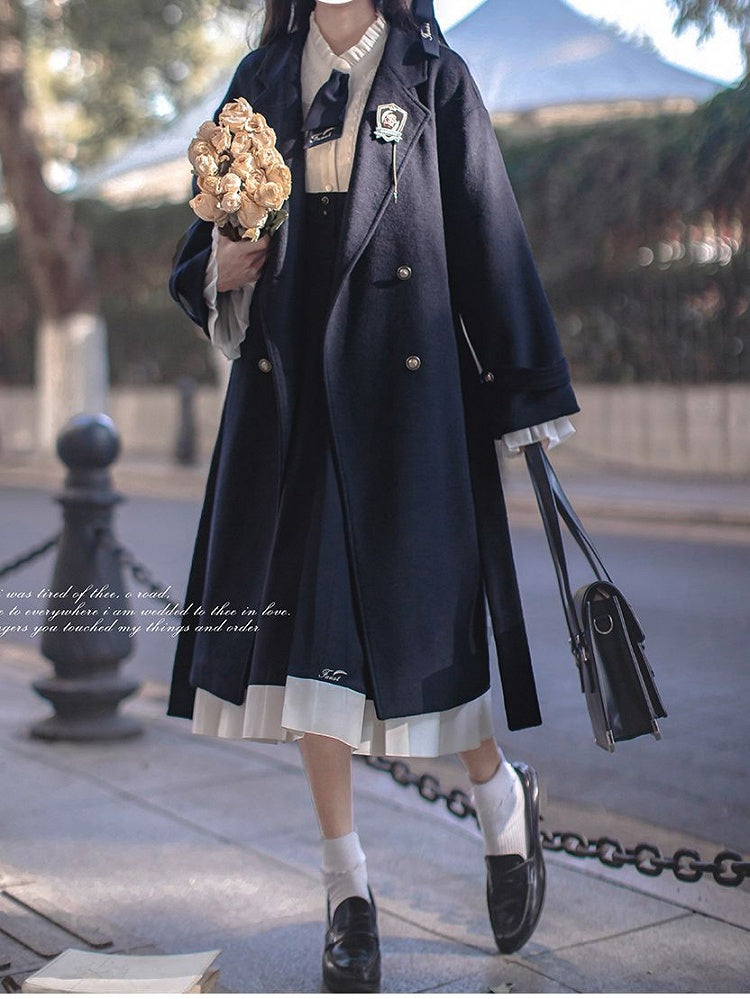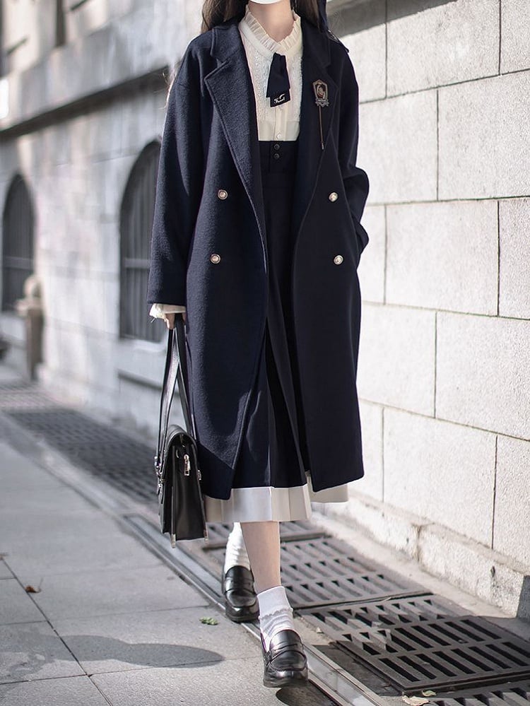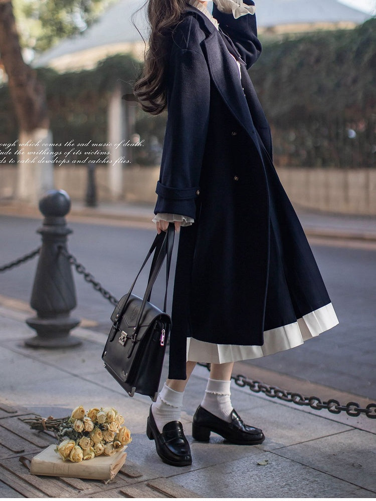 Dunkelblauer Cabanmantel mit V-Ausschnitt