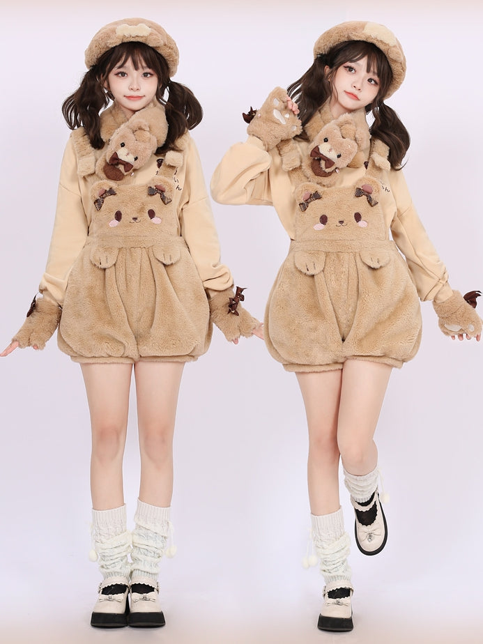 Verleihen Sie Ihrer Garderobe mit unseren süßen Teddybär-Overall-Shorts in Kaffeefarbe etwas Niedlichkeit! Diese Shorts mit bezaubernder Schleife sind aus superweichem Plüsch gefertigt und bieten sowohl Stil als auch Komfort. Perfekt für jeden lässigen Anlass oder zum Entspannen zu Hause.