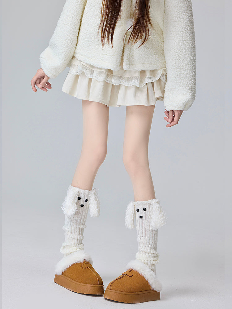 Kaffee/Grau/Weiß/Schwarz Niedliche gestrickte Beinwärmer in Welpenform