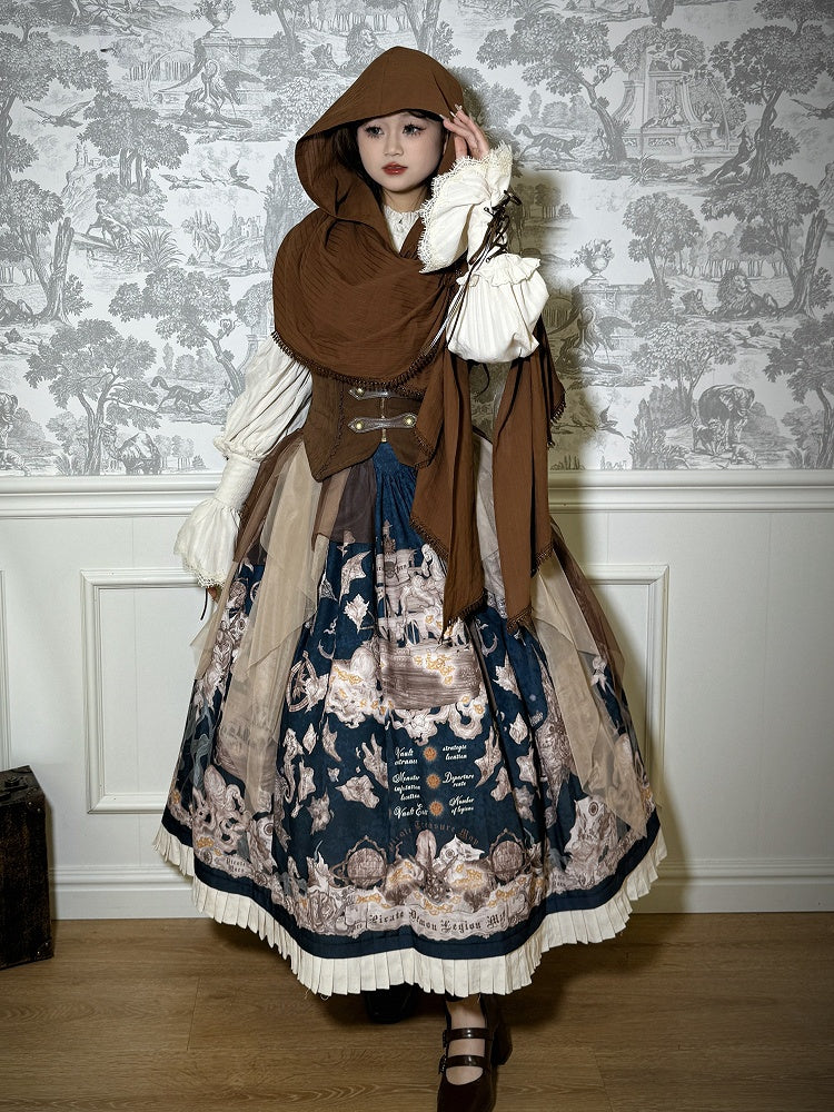 Blau-weißes Old School Lolita Fashion Kleid mit Schleife und Details, JSK-Set