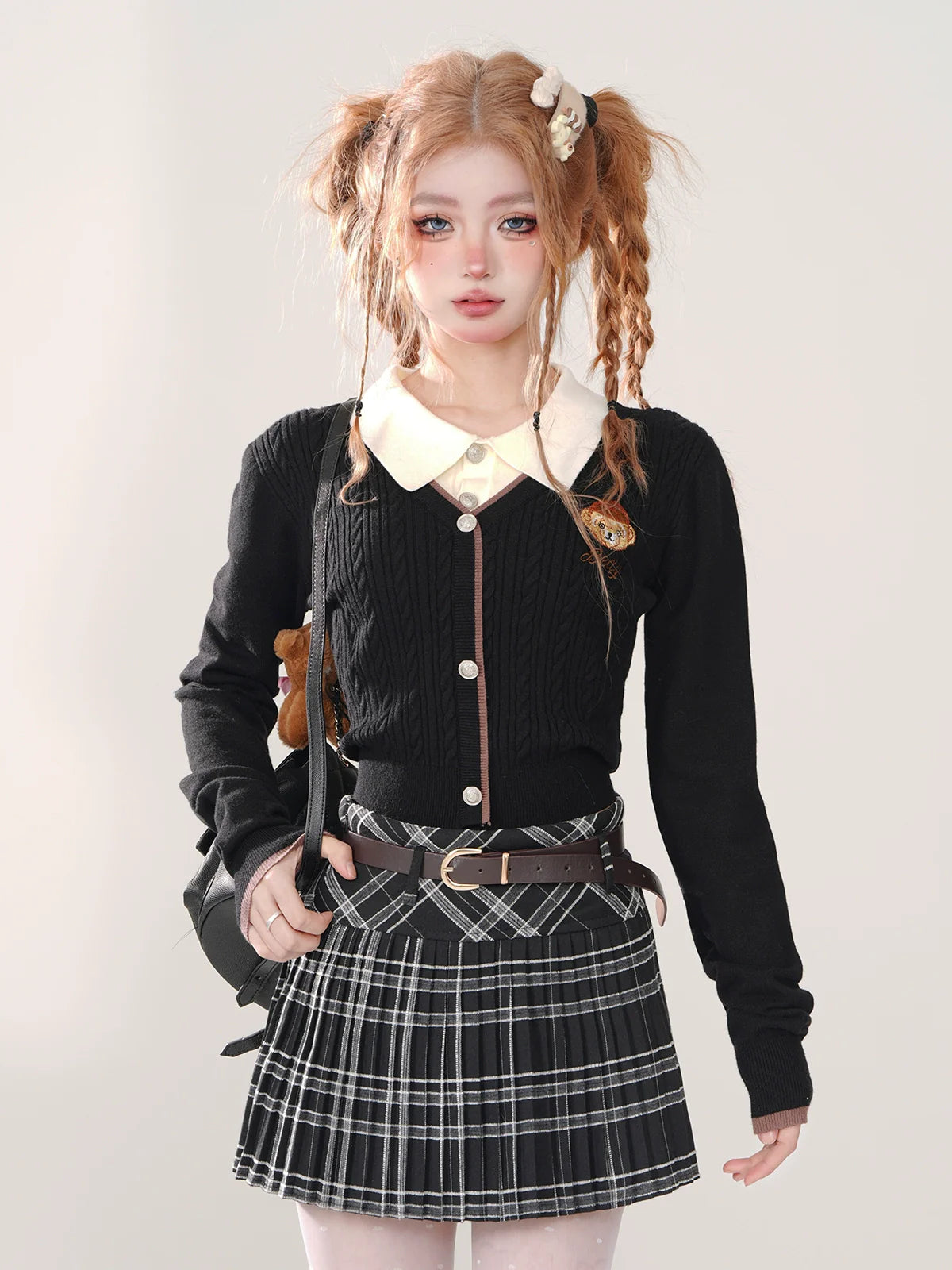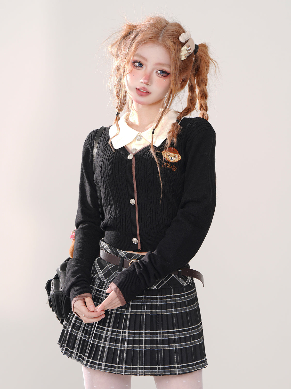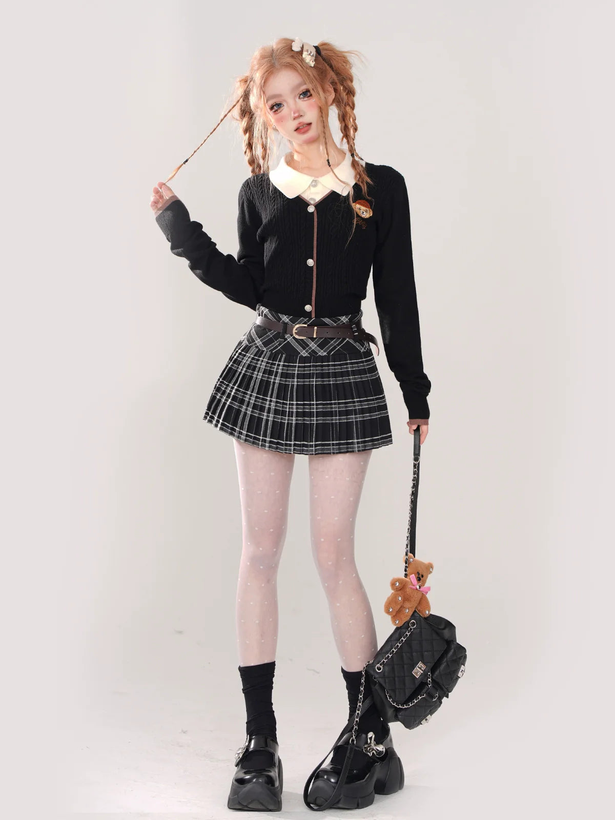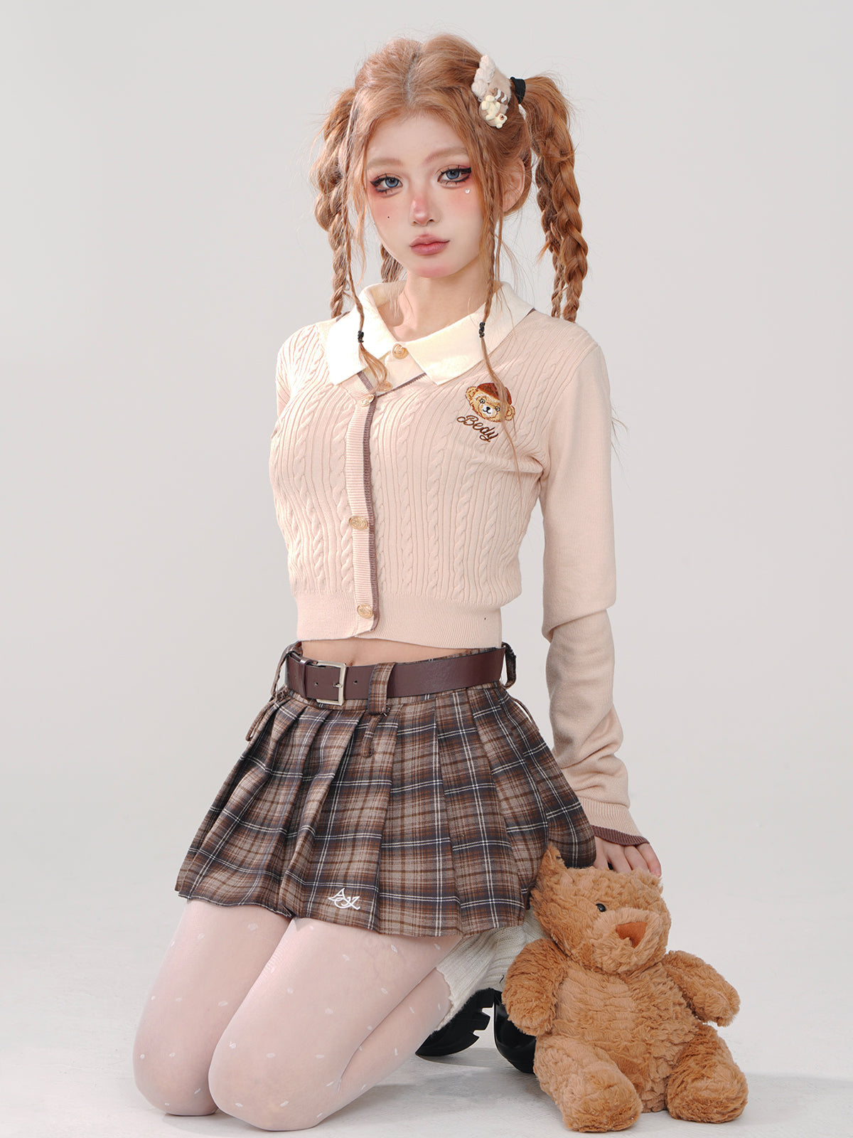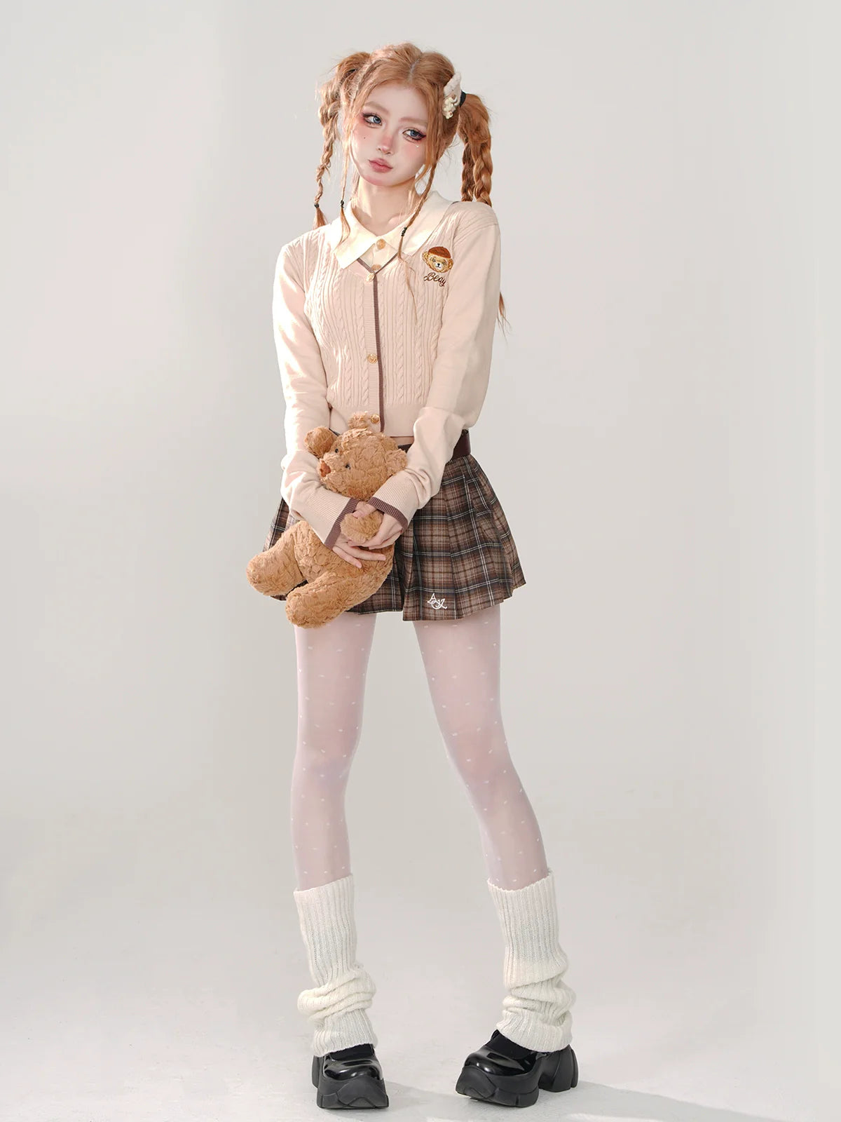 Dieses süße und gemütliche zweiteilige Strickset verfügt über einen künstlichen Polokragen mit einem charmanten College-Bären. Perfekt, um diesen Winter stilvoll und warm zu bleiben.
