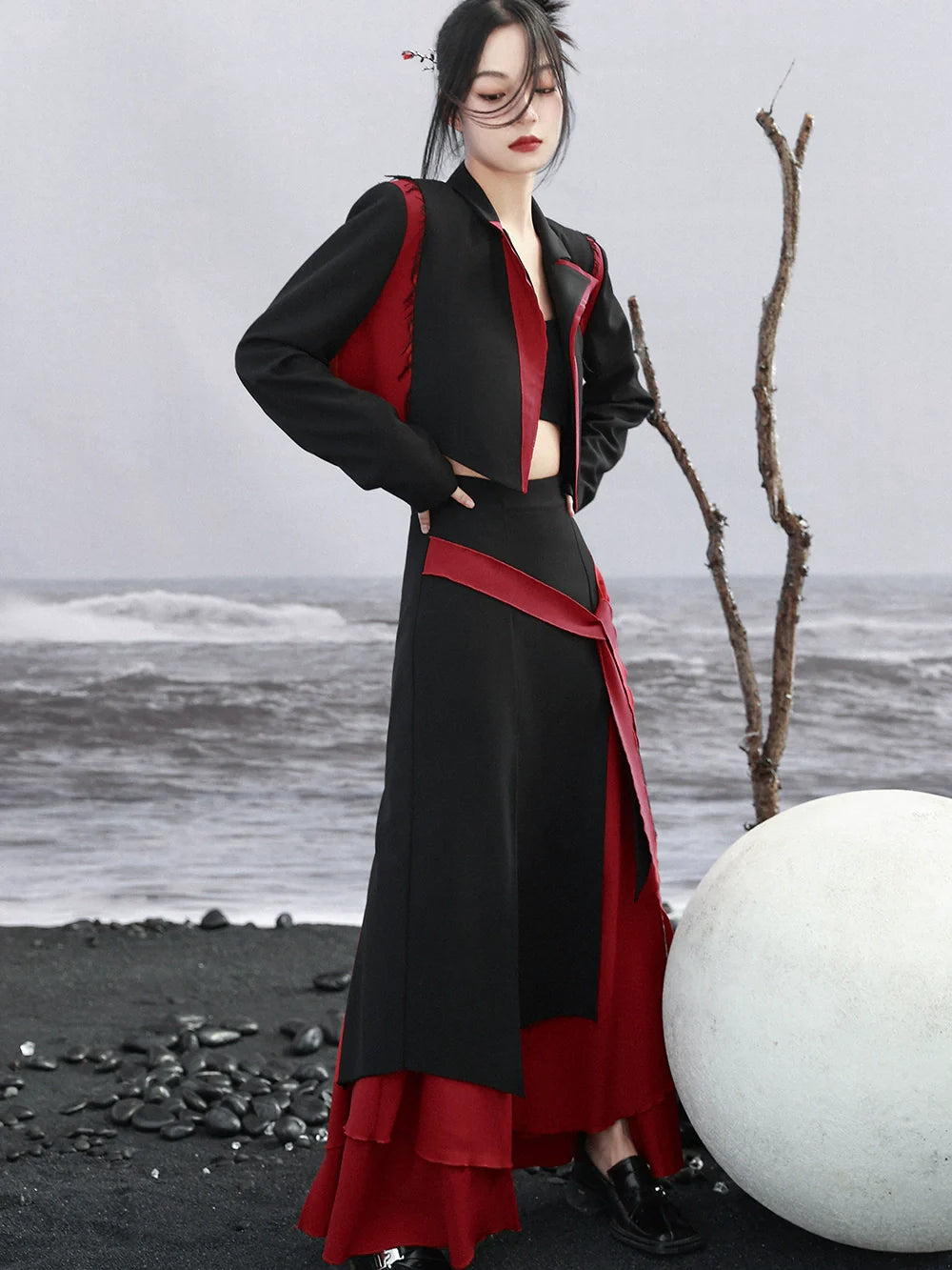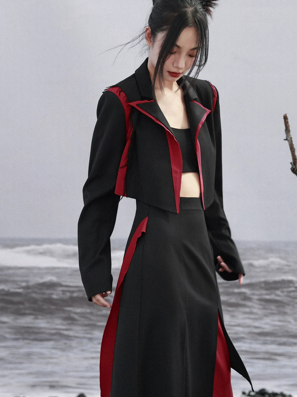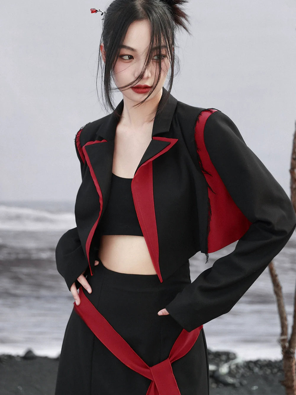 Farbiger Blazerstich, einfaches Oberteil mit hoher Kontrasttaille