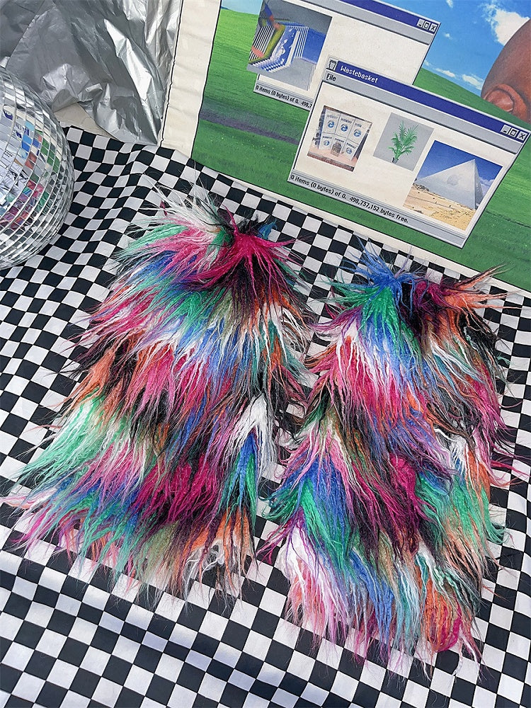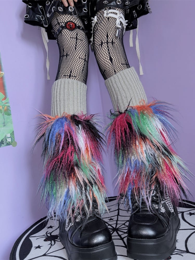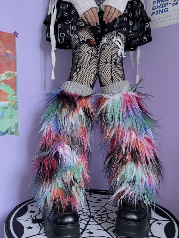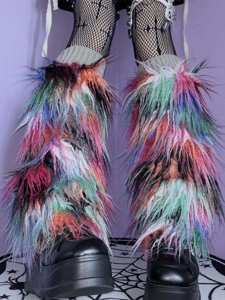 Bunte zottelige Beinwärmer aus Kunstpelz