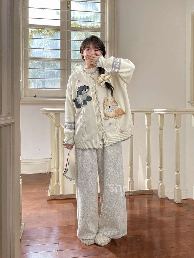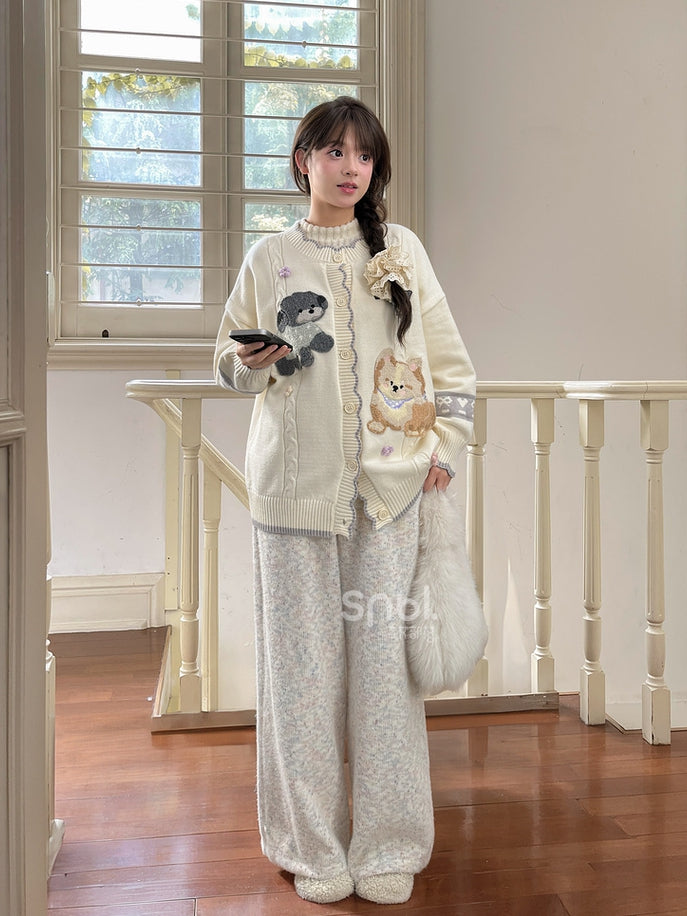 Bunte Strickhose mit hoher Taille und weitem Bein