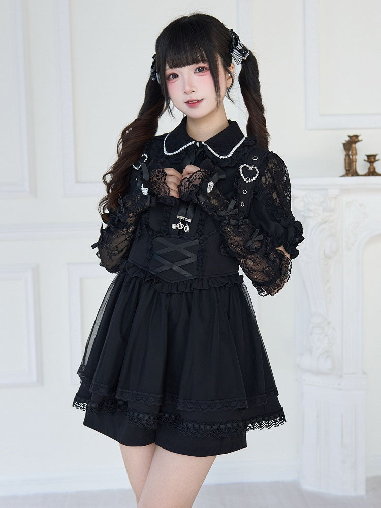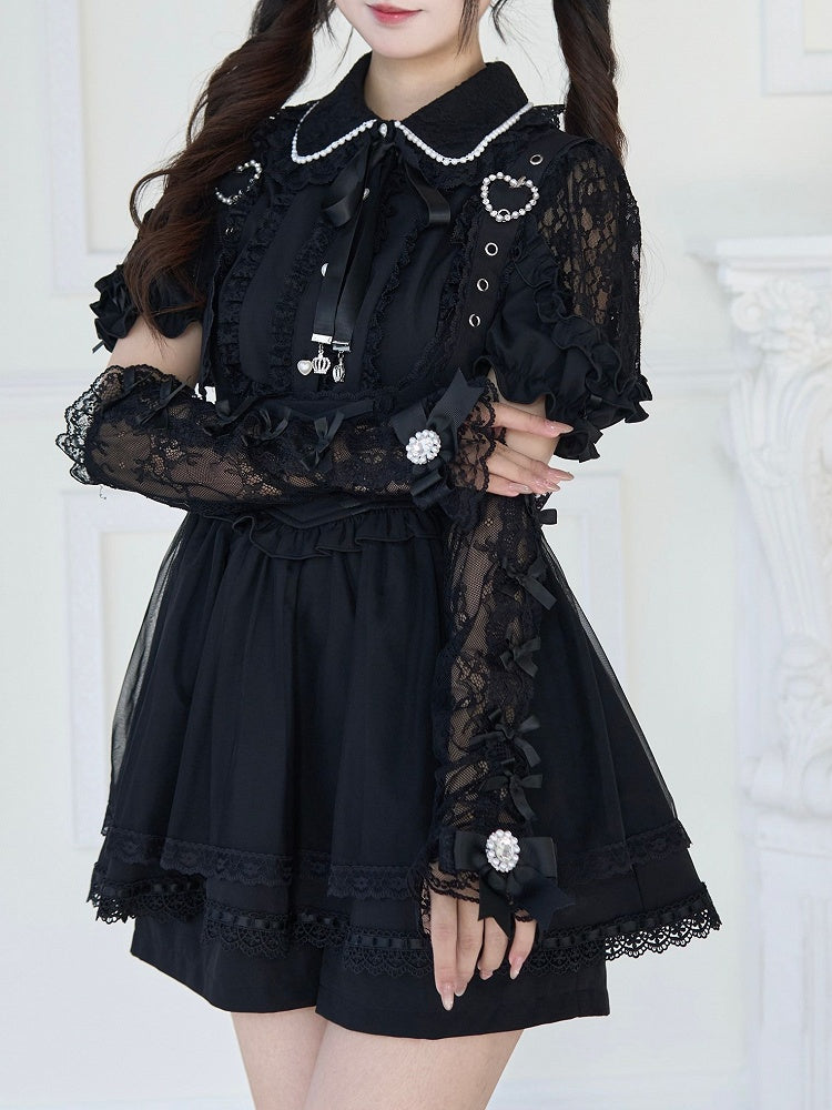 Schwarz-weißes Old School Lolita Fashion Kleid Bowknot Lolita JSK Set