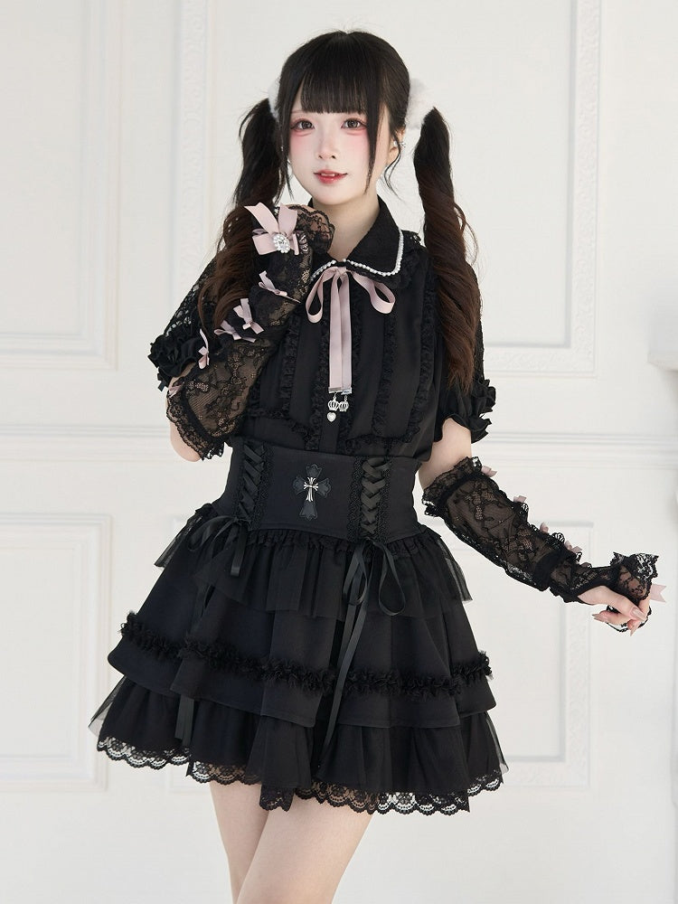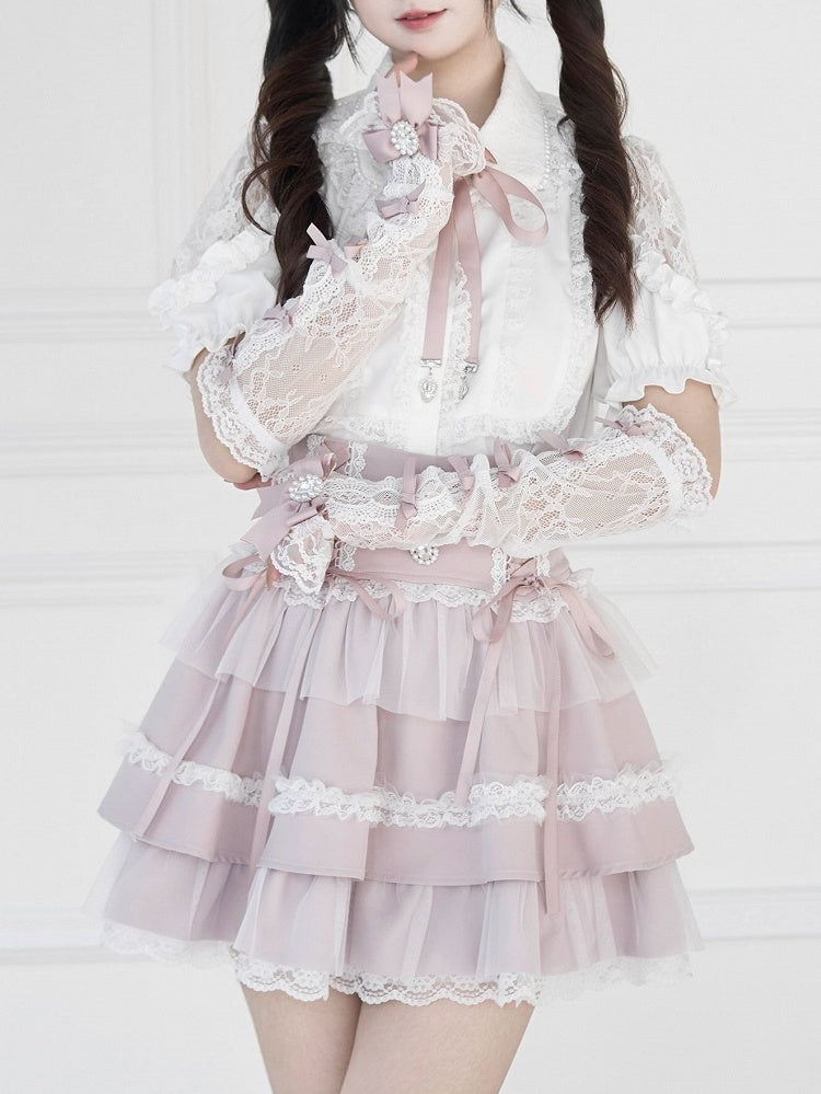 5 Farben Jirai Kei Spitzen-Handgelenkmanschetten mit Schleifendetails