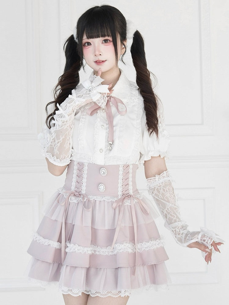 Rosa und weißes Old School Lolita Fashion Kleid Bowknot Detais Lolita JSK Set