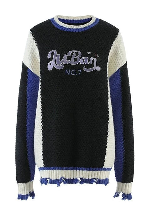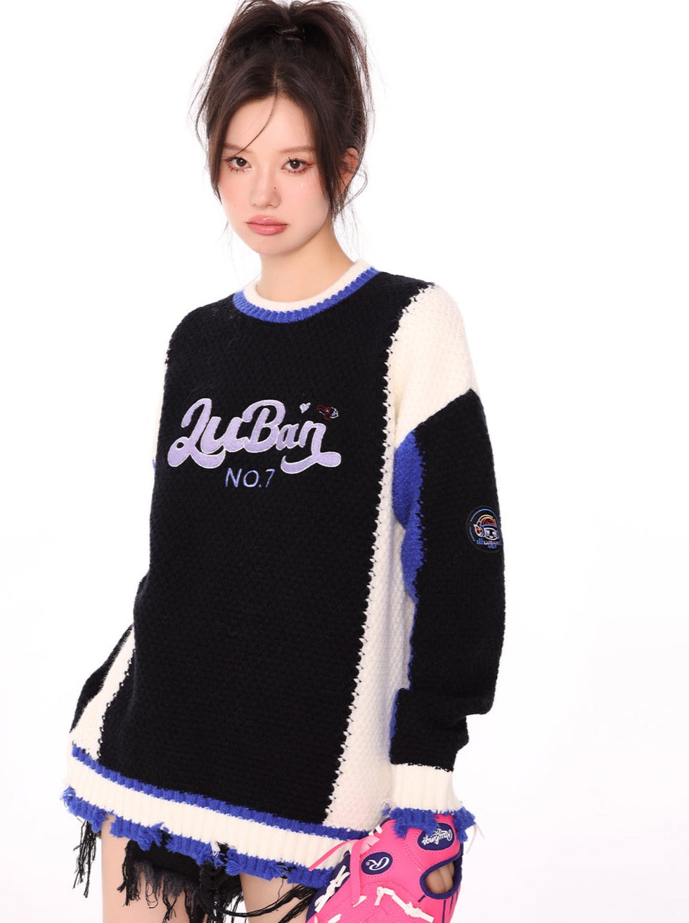Beschädigter Strick mit Logo in Kontrastfarbe