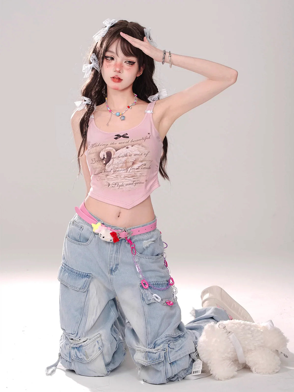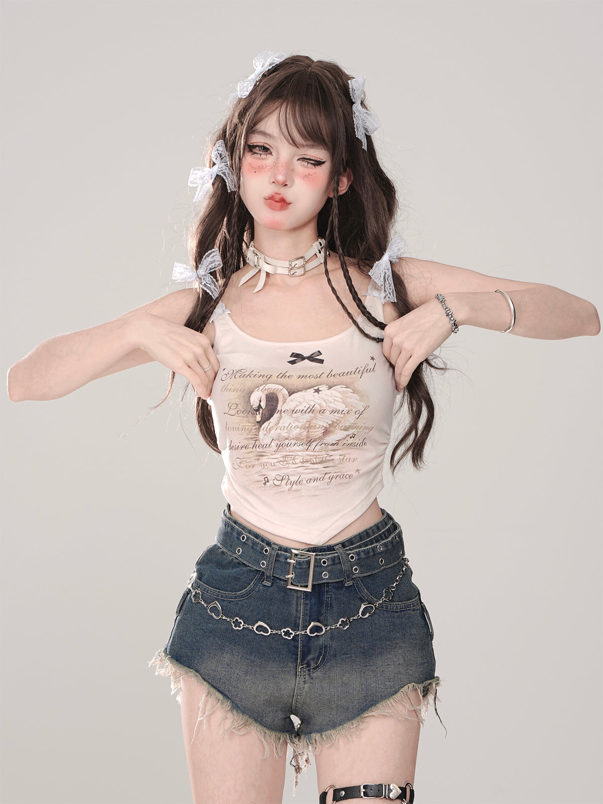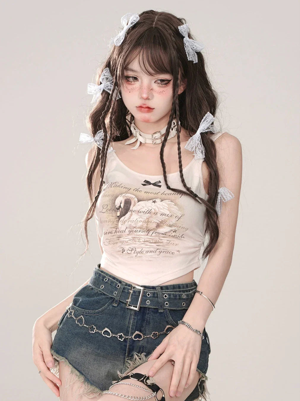 Dieses schmale, ärmellose Hosenträgershirt ist mit einem niedlichen Cookie-Elch und einem Schwanen-Design verziert. Niedlich und stilvoll zugleich, ist dieses Top perfekt für jedes modebewusste Mädchen. Leicht und vielseitig, passt es zu jedem Anlass elegant oder leger.