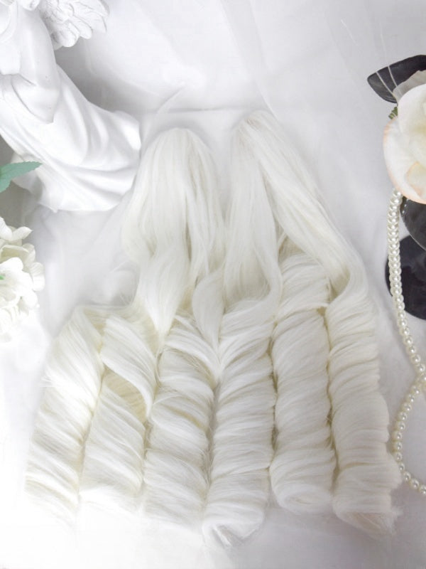 Cremeweiße Perücke im kurzen Bobschnitt mit Pony+Doppelte Pferdeschwanzklammern