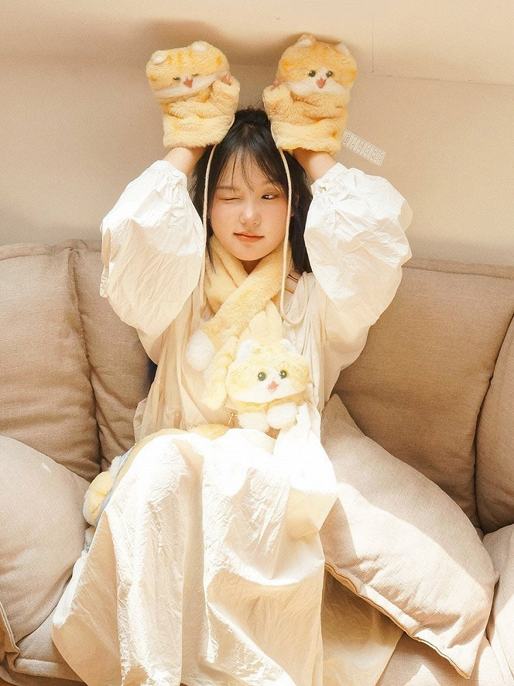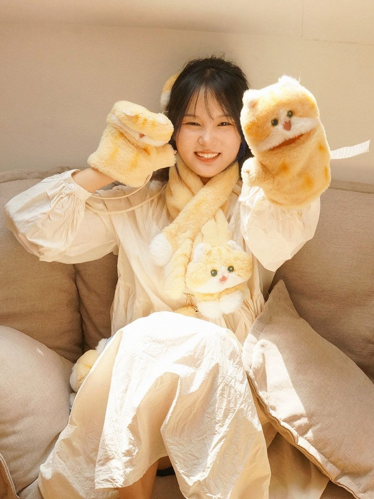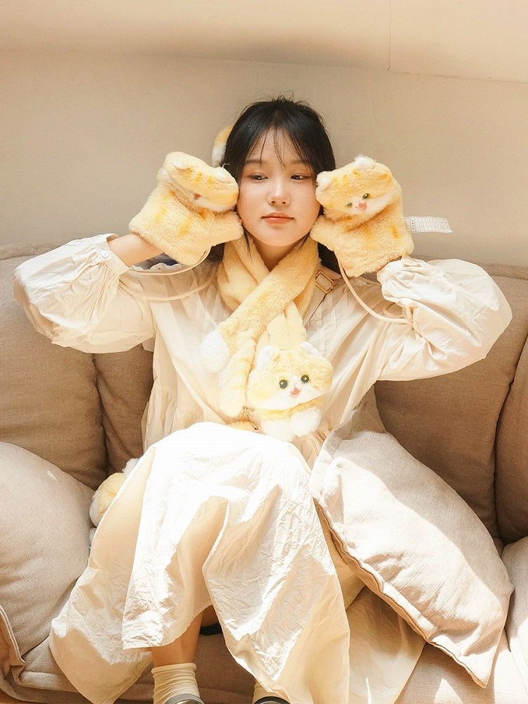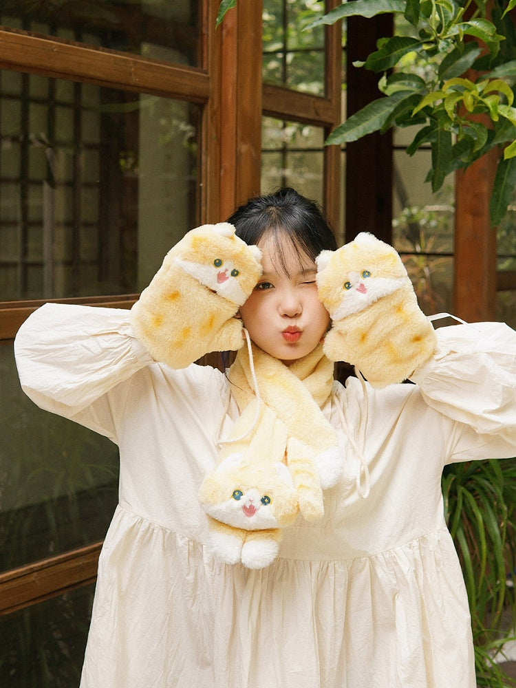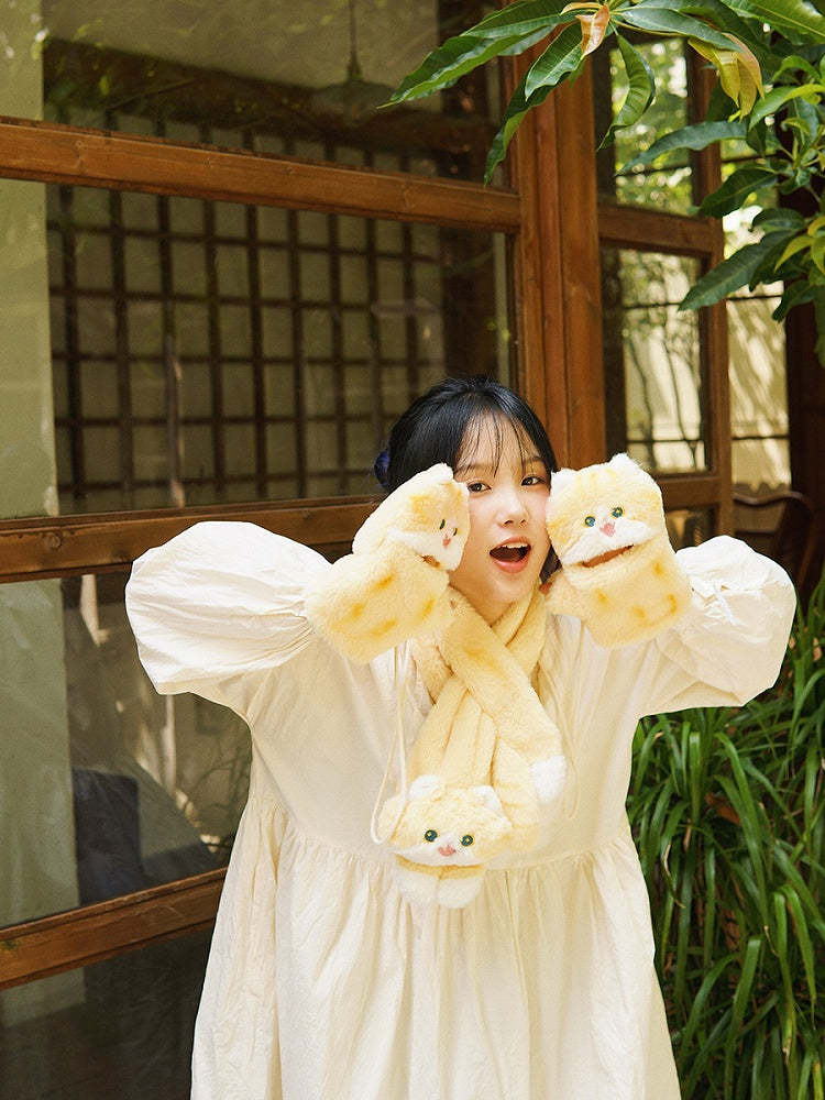 Cremegelbe süße Handschuhe in Katzenform