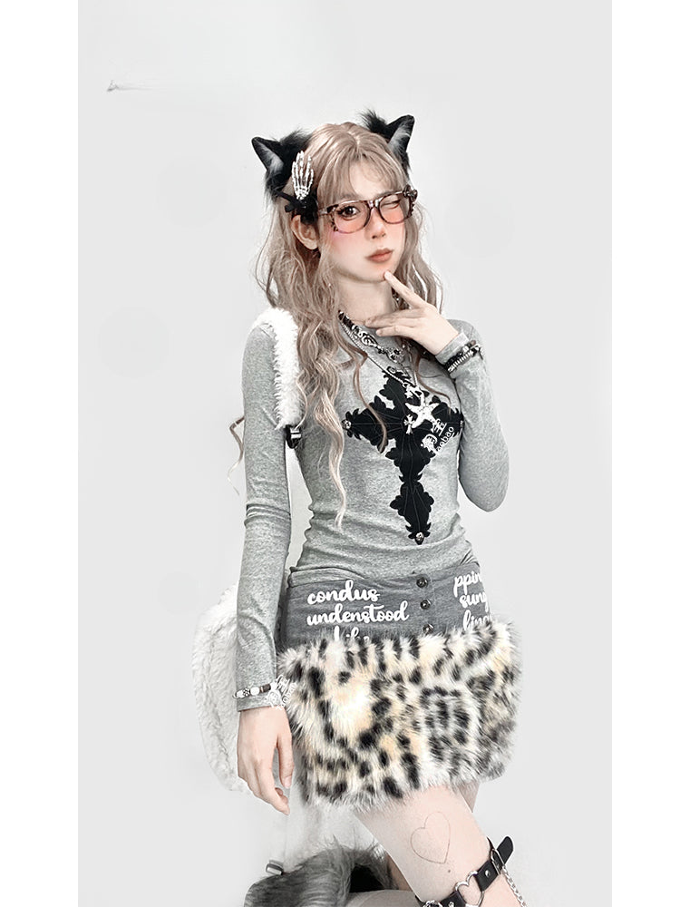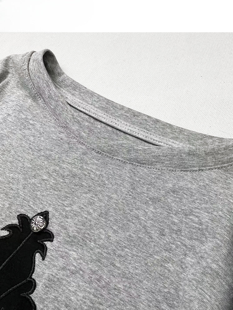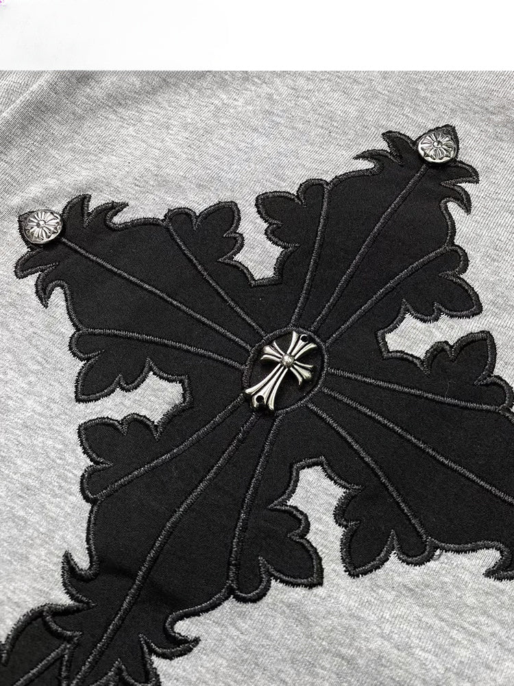 Graues Top mit Kreuzapplikation