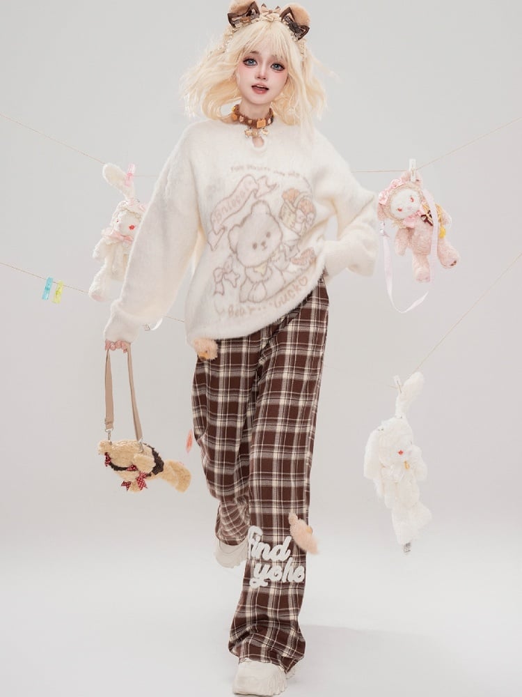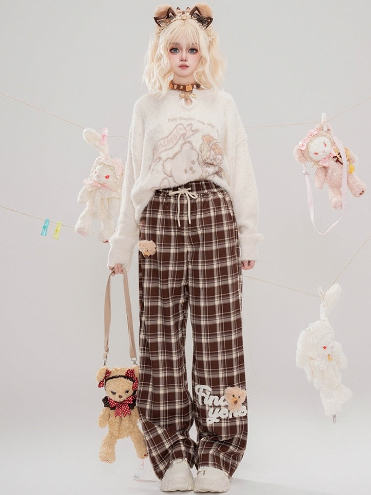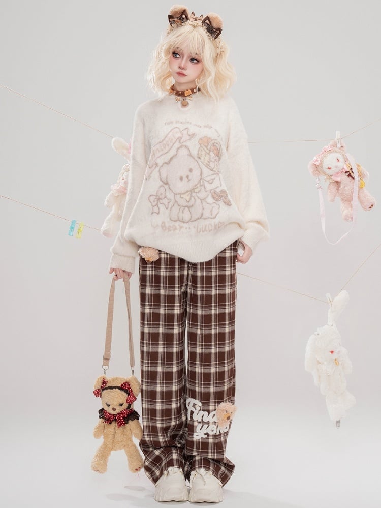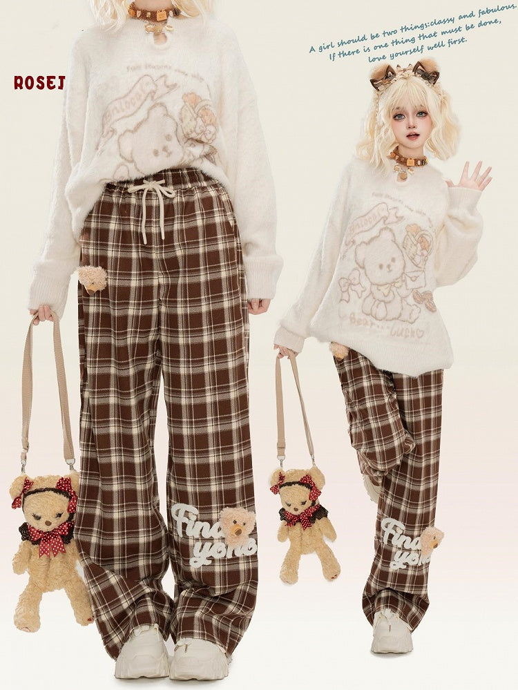 Verleihen Sie Ihrer Garderobe mit unserer süßen, mit Bären verzierten, gerade geschnittenen Camel-Karohose einen Hauch von Niedlichkeit. Diese Hose besticht nicht nur durch ihr charmantes Bären-Design, sondern auch durch ihren bequemen geraden Schnitt und das stylische Camel-Karomuster. Perfekt für jeden lässigen oder eleganten Look.