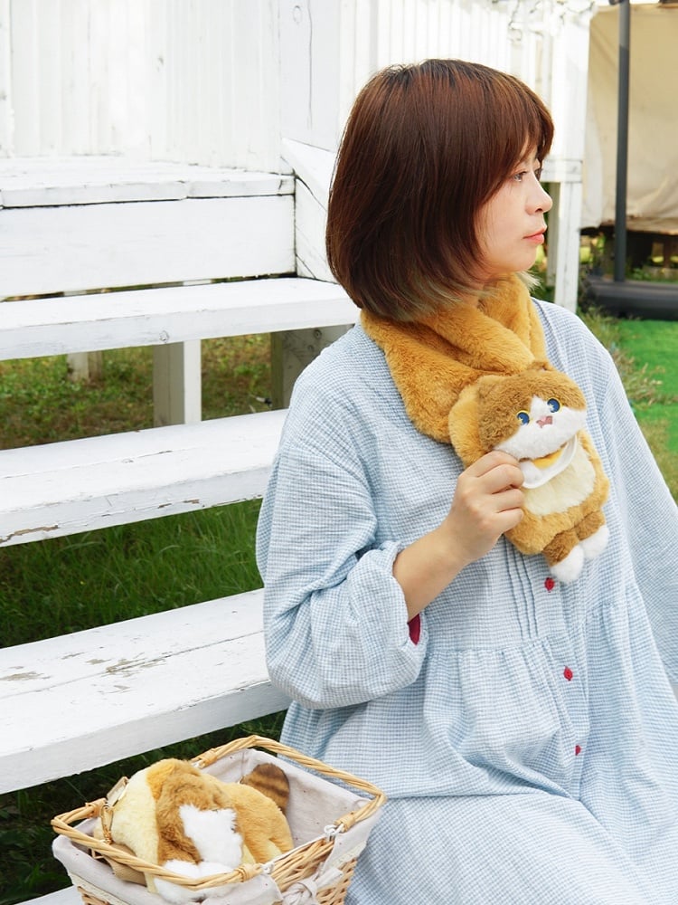 Gönnen Sie sich diesen süßen braunen Plüschschal in Katzenform. Halten Sie sich warm und stilvoll mit diesem einzigartigen Accessoire, das Ihnen garantiert ein Lächeln ins Gesicht zaubert. Perfekt für jeden Katzenliebhaber, verleiht dieser Schal jedem Outfit einen Hauch von Niedlichkeit.