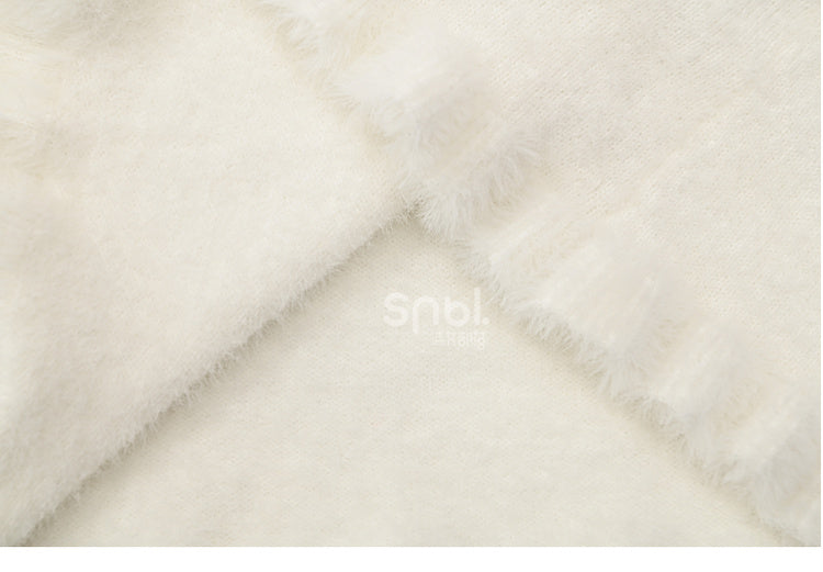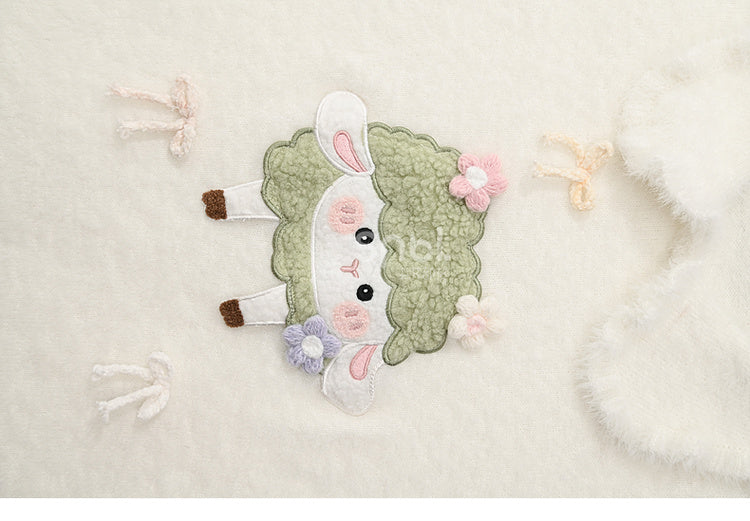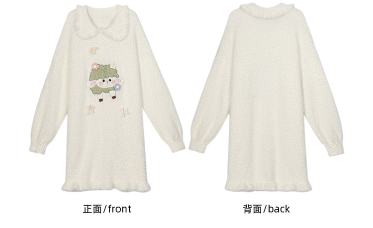 Süßes weißes Strickkleid mit Peter-Pan-Kragen und Lamm-Applikation