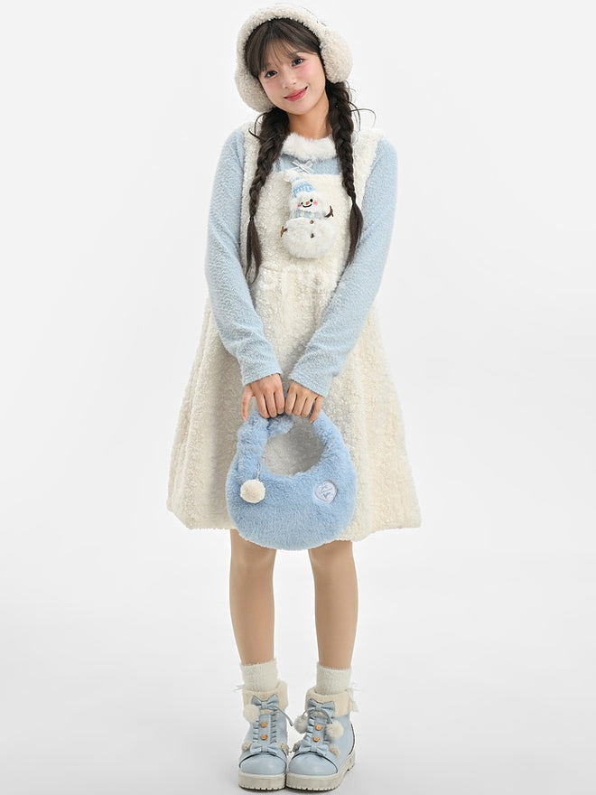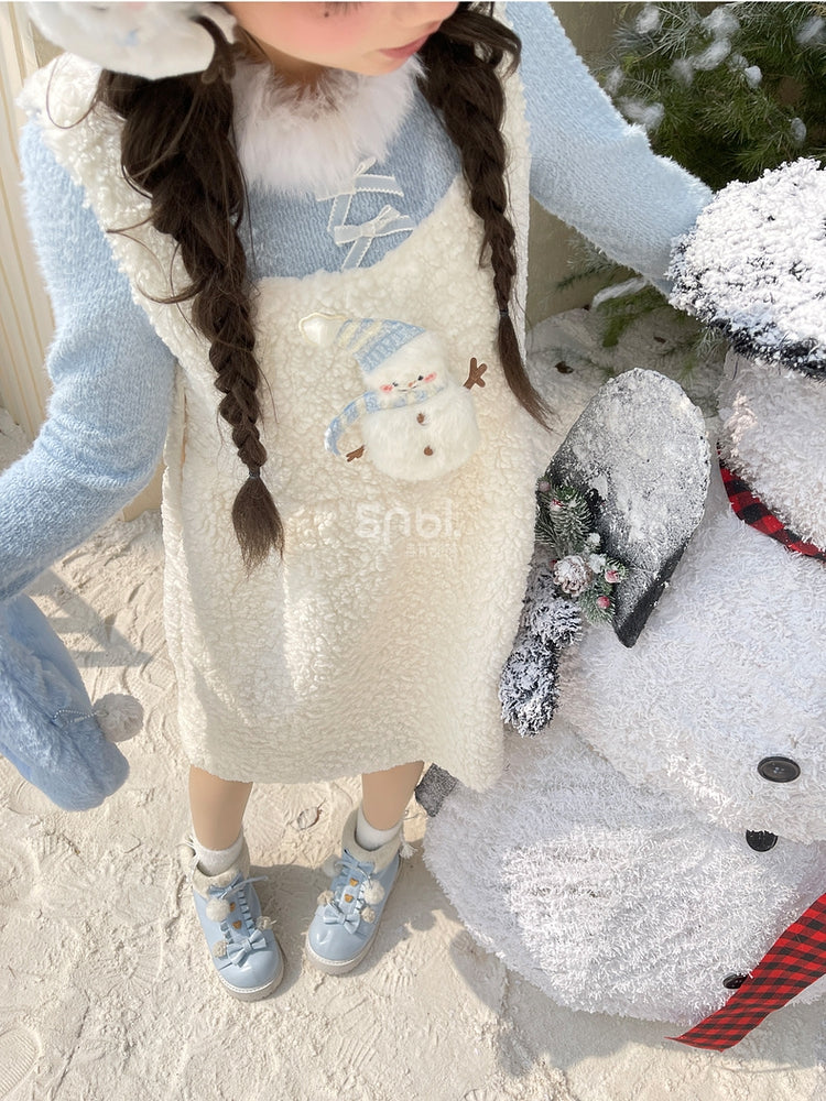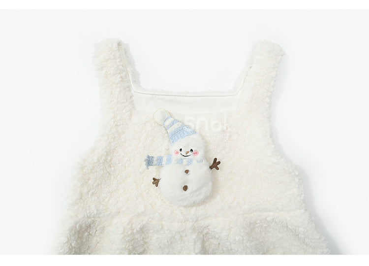 Süßes, mit Schneemann verziertes weißes Plüsch-Overallkleid
