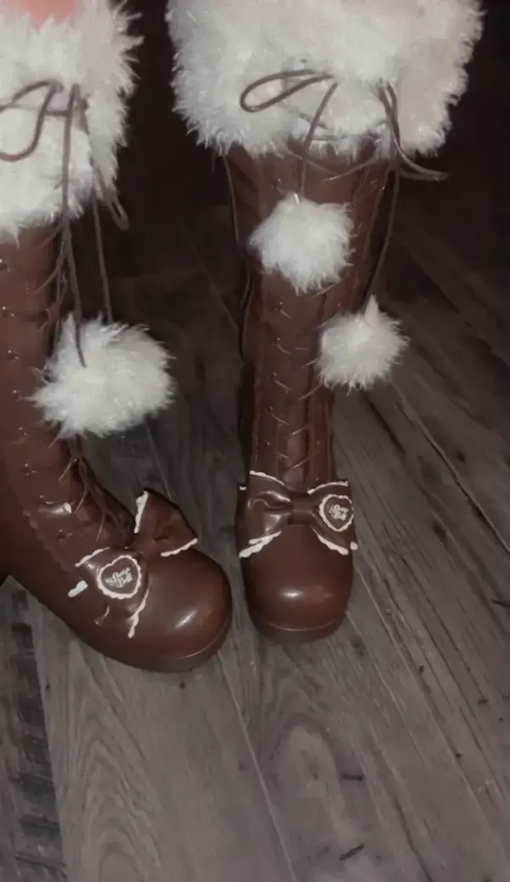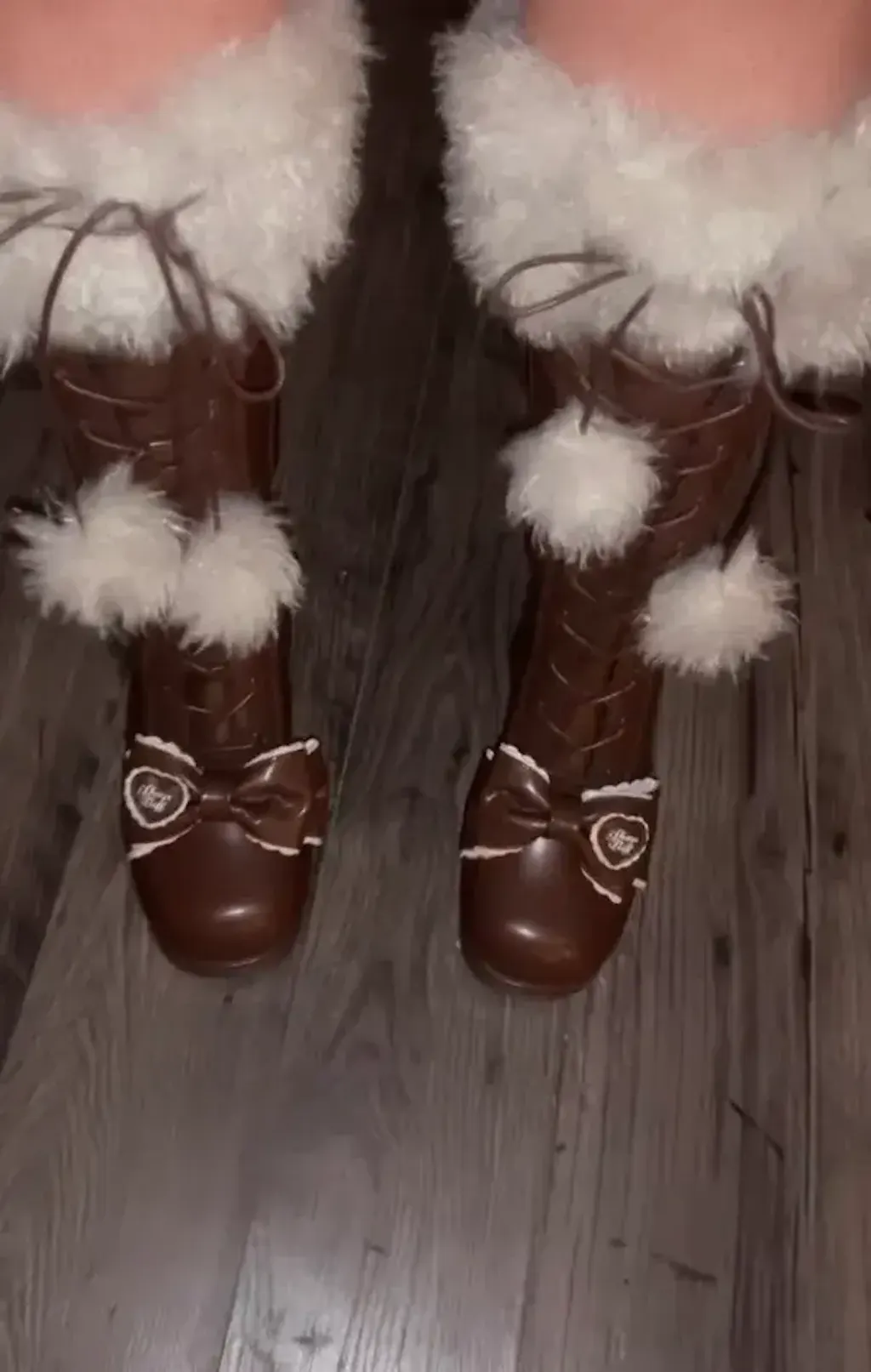 Top Boots Hybrid Elegant Brown Winter Lolita Bow