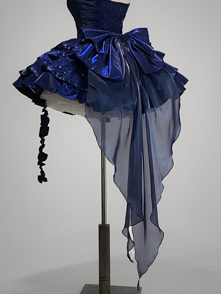 Dunkelblaue Schleppe mit großer Schleife