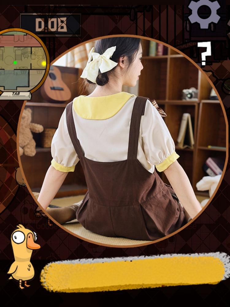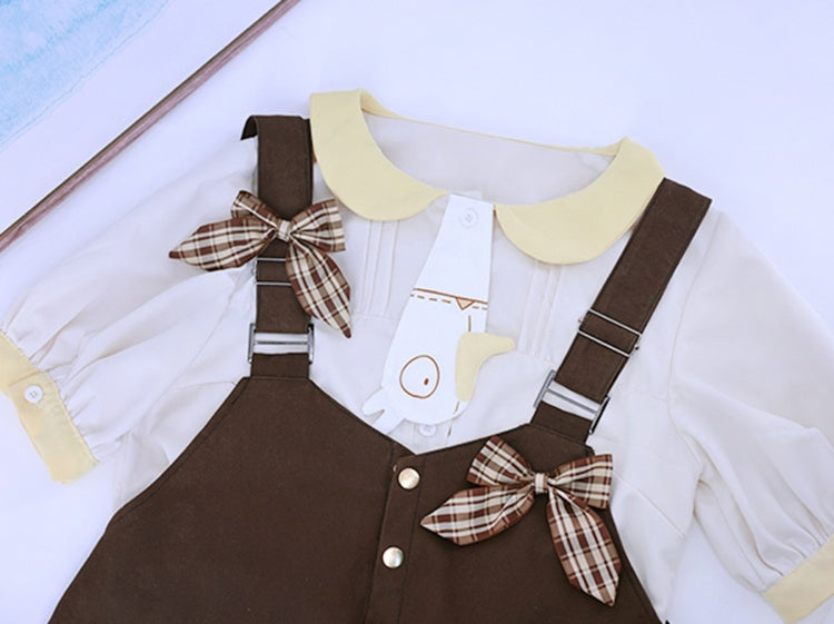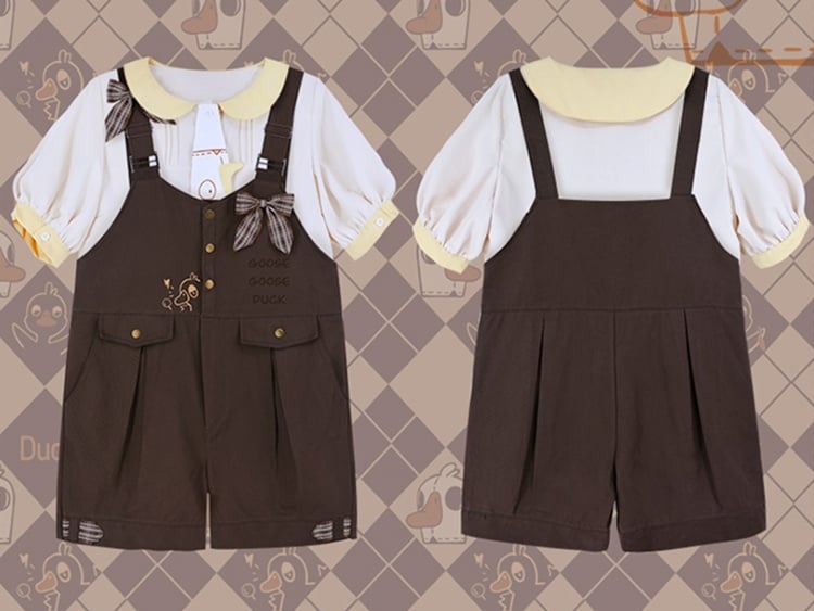Verschönern Sie Ihre Kawaii-Garderobe mit diesen bezaubernden Latzshorts! Dank der verstellbaren, breiten Schulterträger sitzt diese Shorts immer perfekt. Die Knopfverschlüsse am oberen Teil erleichtern das An- und Ausziehen. Die karierte Schleife und die skurrilen Verzierungen im Gänsemuster verleihen diesen Shorts einen niedlichen Touch und machen sie zu einem echten Hingucker. Funktional und modisch zugleich, verfügen die Shorts außerdem über verzierte Pattentaschen. Ideal für alle, die Komfort mit bezauberndem Stil verbinden möchten!