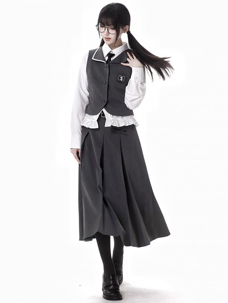 Wir präsentieren unseren eleganten, langen Rock mit Kellerfalten – eine perfekte Mischung aus Raffinesse und verspieltem Charme. Dieser Rock besticht durch sorgfältig gearbeitete Kellerfalten, die Volumen und Struktur verleihen und bei jedem Schritt für eine anmutige Silhouette sorgen. Die zarten Schleifendetails verleihen einen Hauch von Verspieltheit und fangen die Essenz der Kawaii-Mode perfekt ein. Ergänzt wird das Gesamtdesign durch einen schicken Schnallengürtel, der sowohl Funktionalität als auch Stil bietet und es Ihnen ermöglicht, die Taille für eine schmeichelhafte Passform zu betonen.