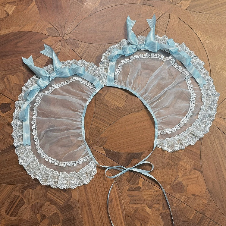 Blau-weißes Old School Lolita Fashion Kleid mit Schleife und Details, JSK-Set