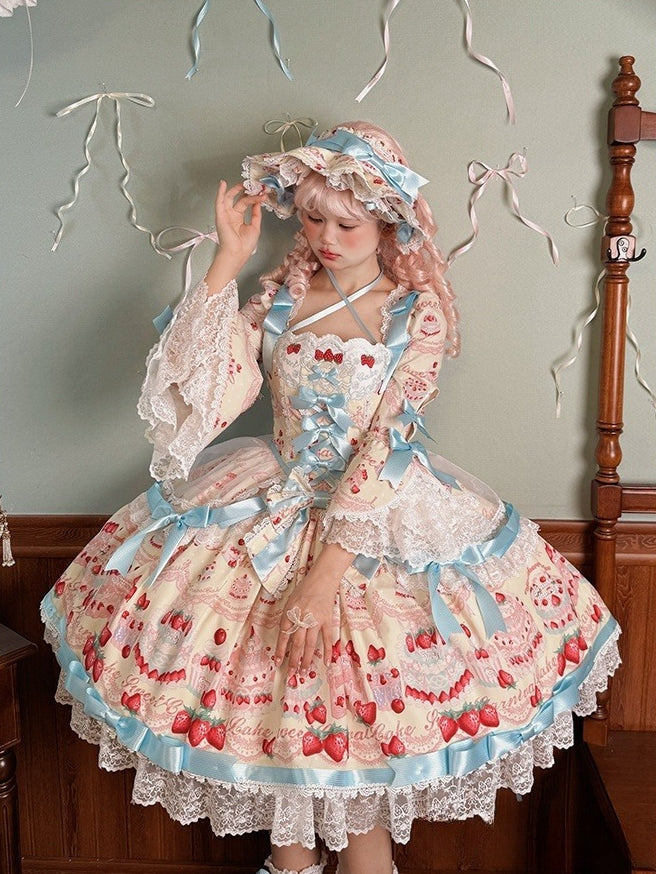 Rosa und weißes Old School Lolita Fashion Kleid Bowknot Detais Lolita JSK Set