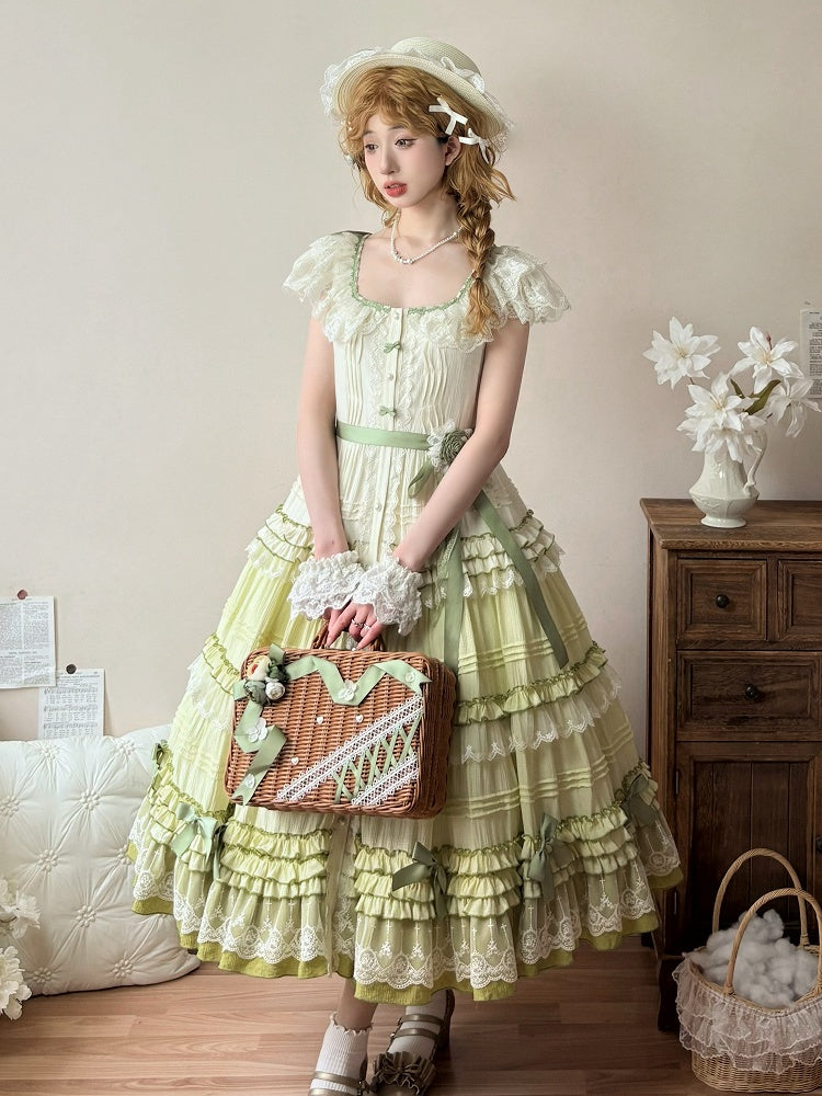 Rosa und weißes Old School Lolita Fashion Kleid Bowknot Detais Lolita JSK Set