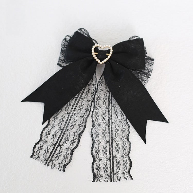 Dekoration Schwarze Jirai Haarspange Mit Kei Großem Herz Spitzenschleife
